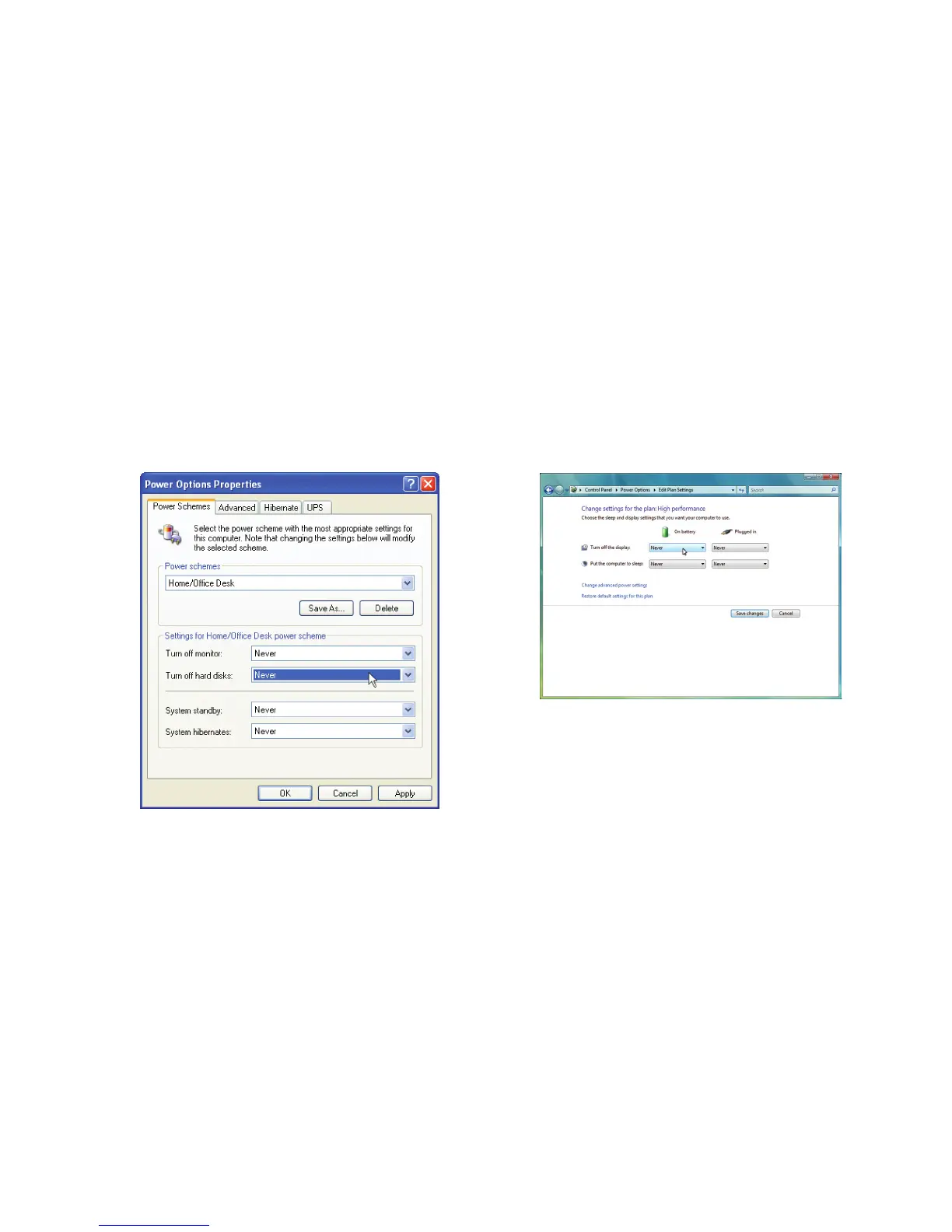 setting options: Turn o monitor, turn o hard disks,