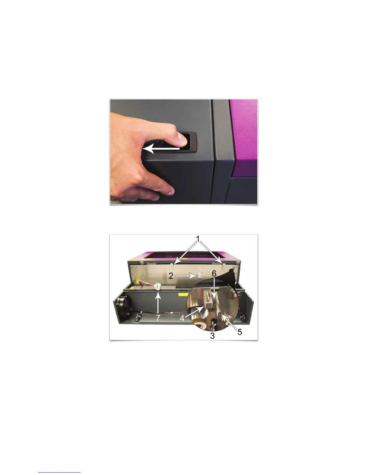 Note: Access latches for the laser cover are lockable. However, all systems are shipped from the factory