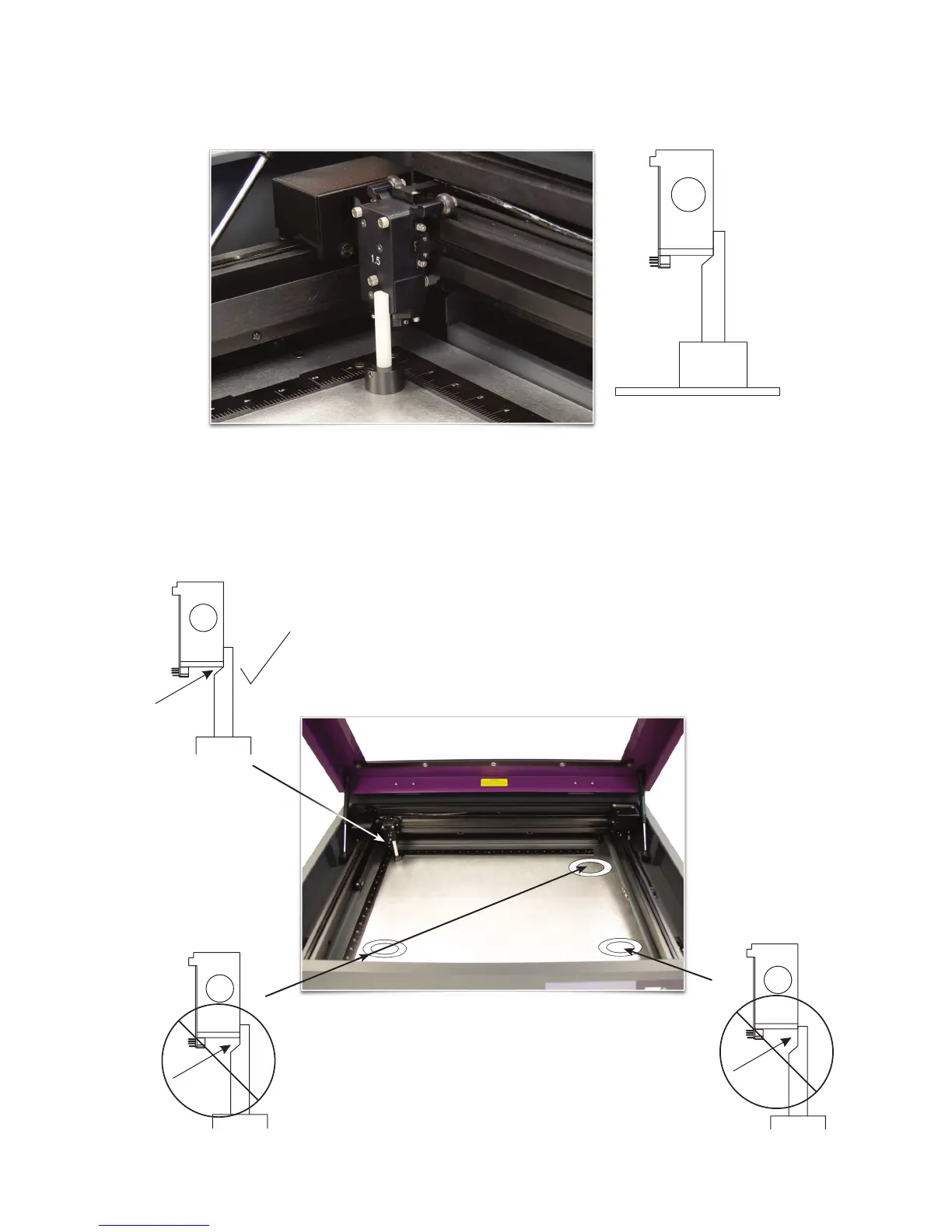 Using the upper left corner as a reference point, move the focus carriage by hand to each corner and take note 6.