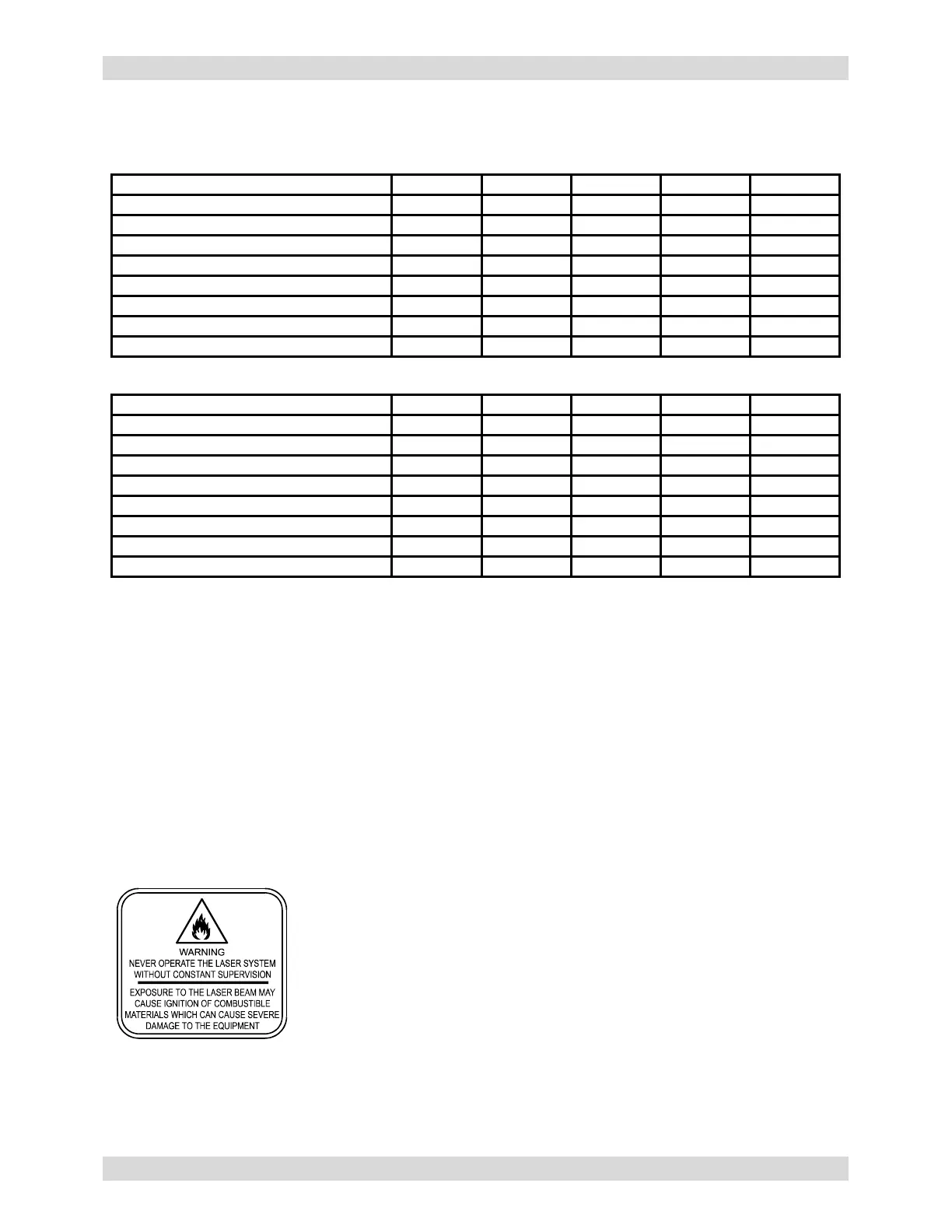 MATERIAL. Never leave the laser system running unattended for any