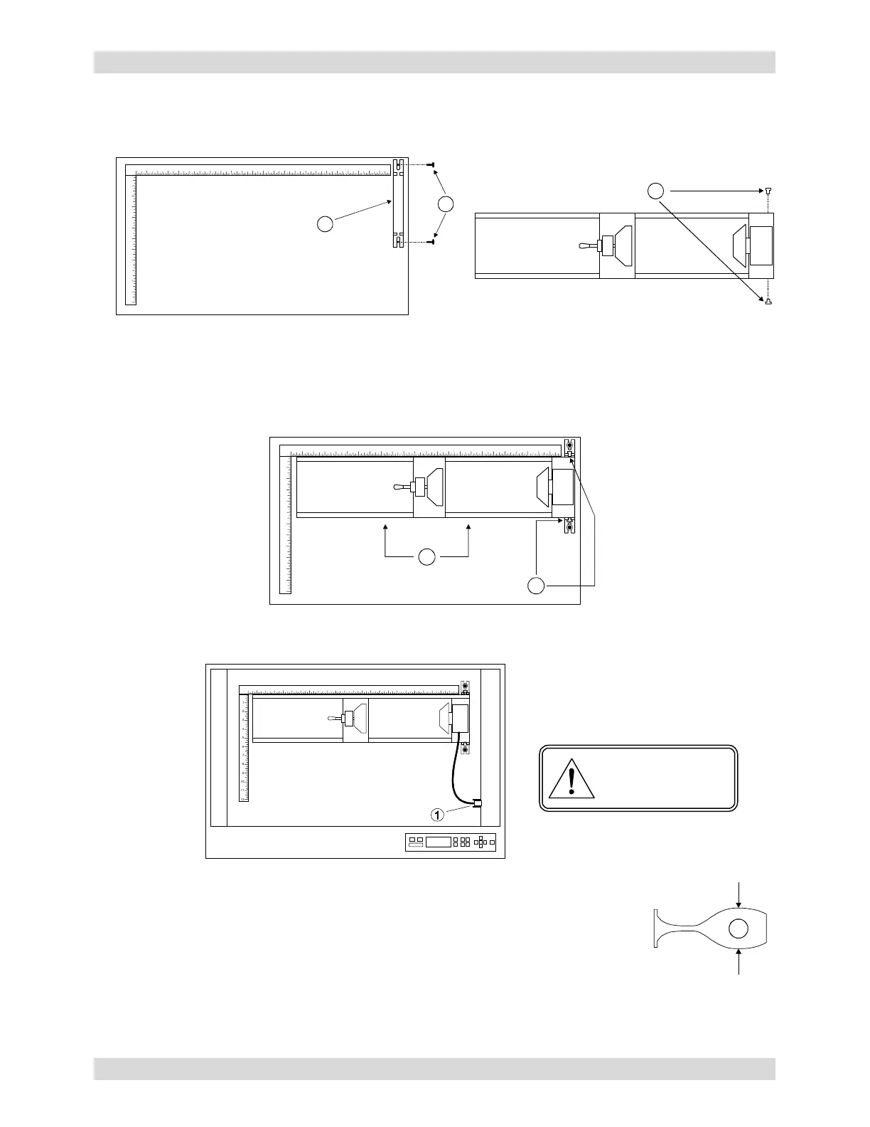 • Place the bracket on the table (1). Insert the thumbscrews and washers (2) into the screw holes but