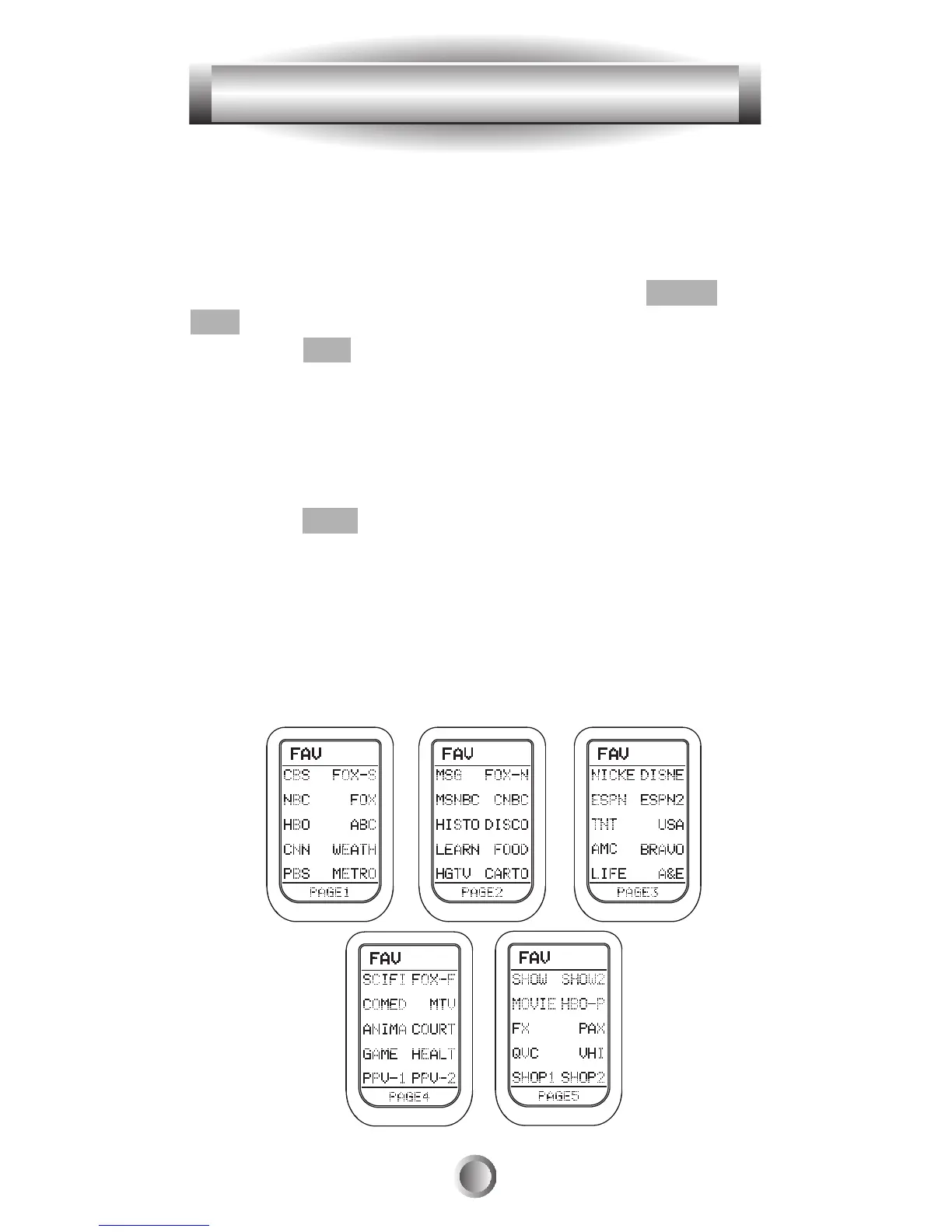 store in the FAVORITE channel button. You can store up to