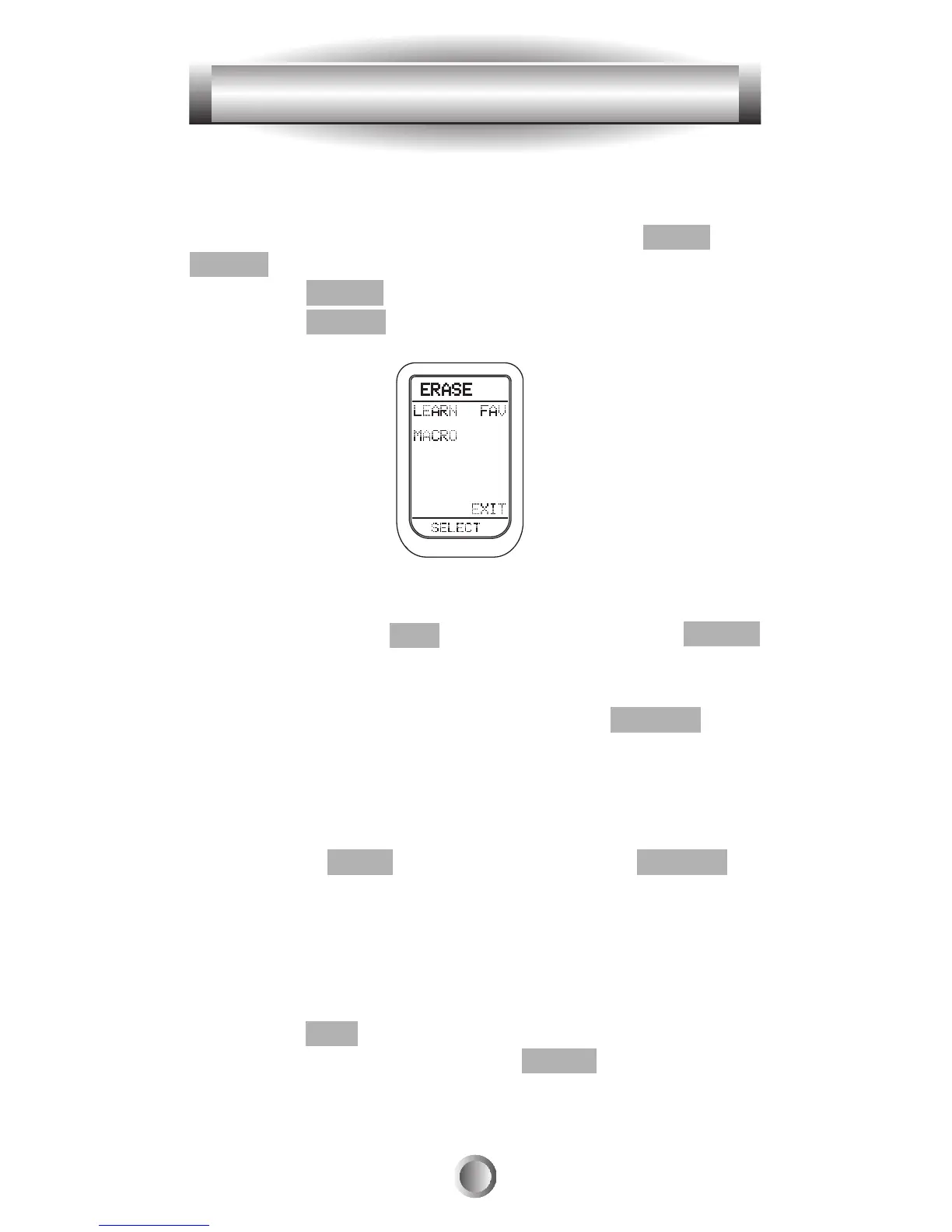 7. Press the ALL button if you wish to erase all the learned