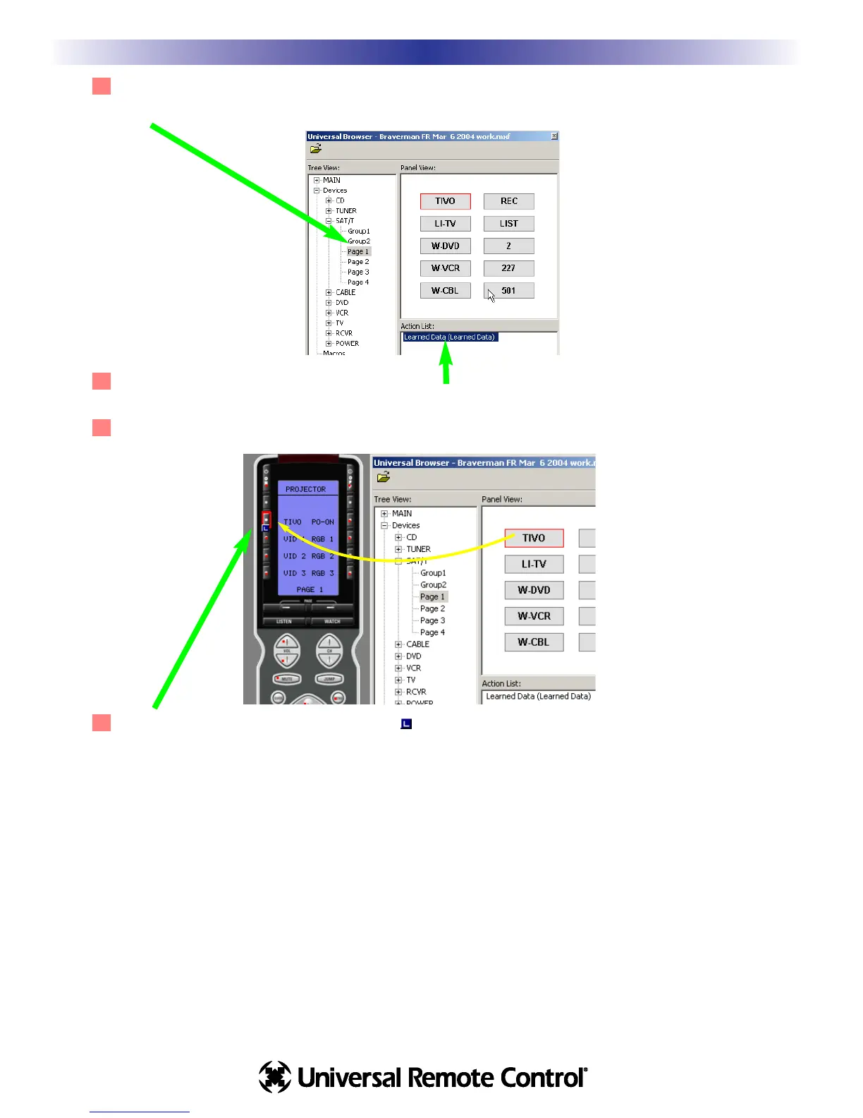 3 Use Tree View to Navigate to the Panel containing LEARNED IR codes you want. Click on the panel