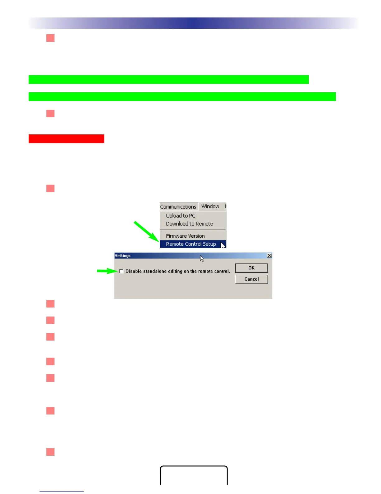 1 From the Communications Menu, select Remote Control Setup. You may have disabled the