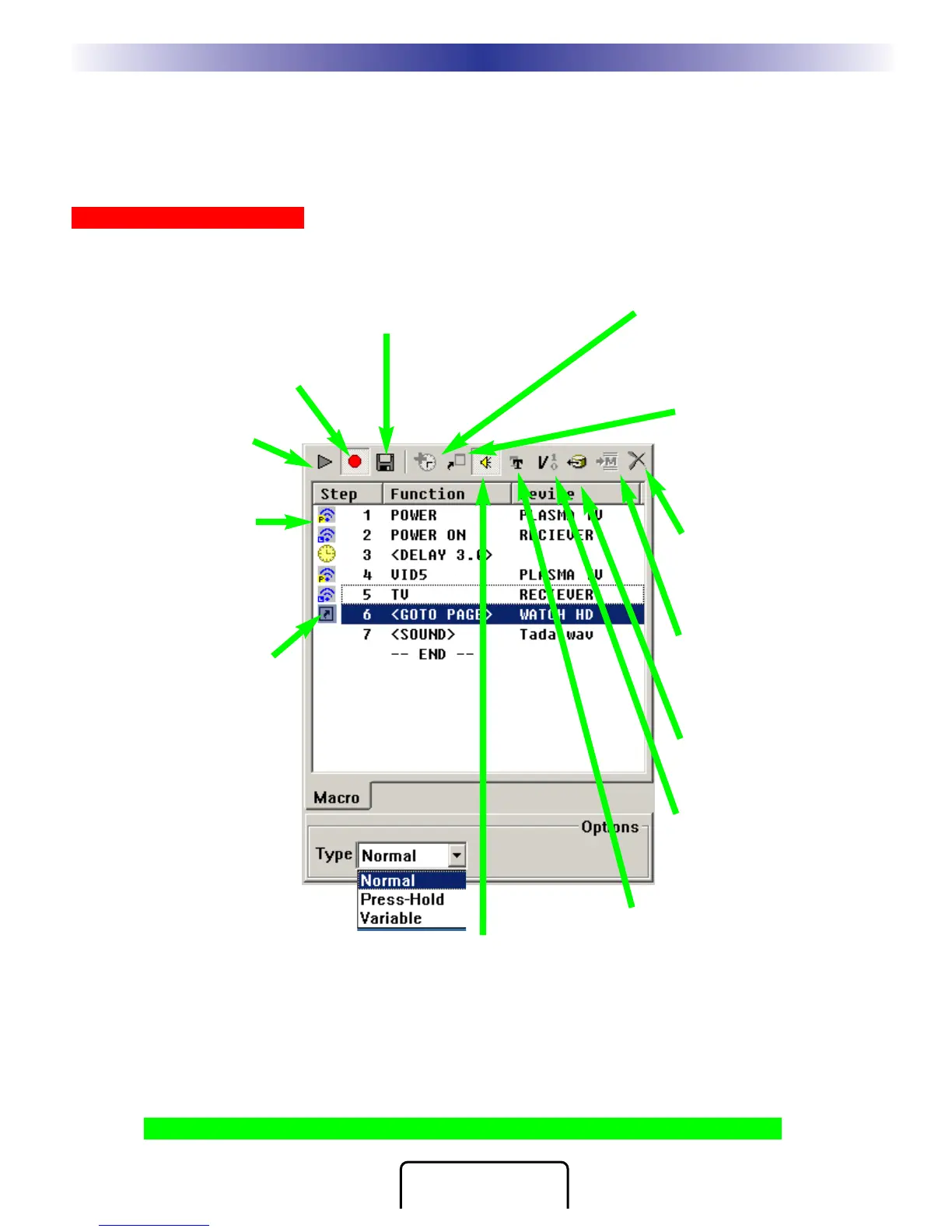 The Macro Window controls macro recording as follows: