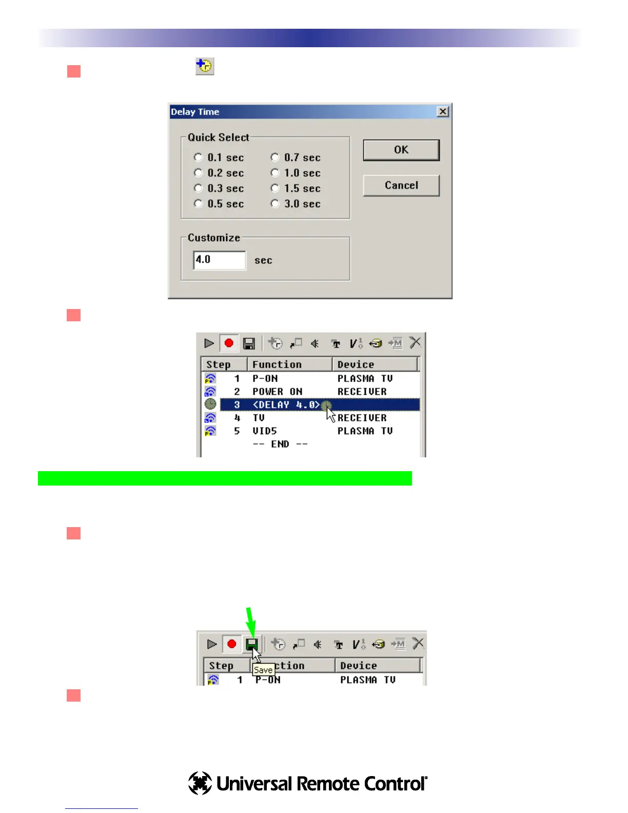 9 Select the Delay icon , then when the delay window opens, click on the preset amount of delay