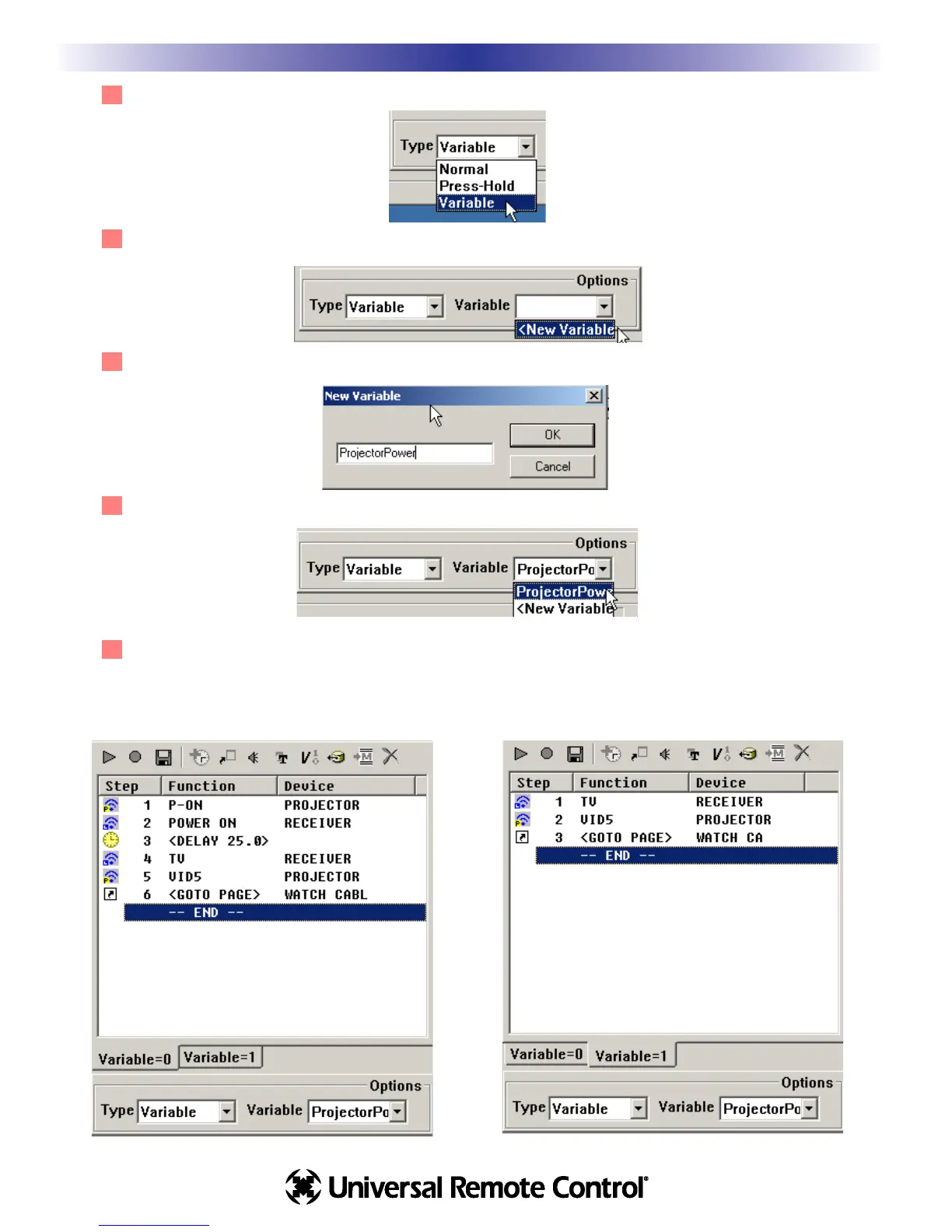 projectorpower variable = 0, the other when the projector power variable = 1. Program the macro in