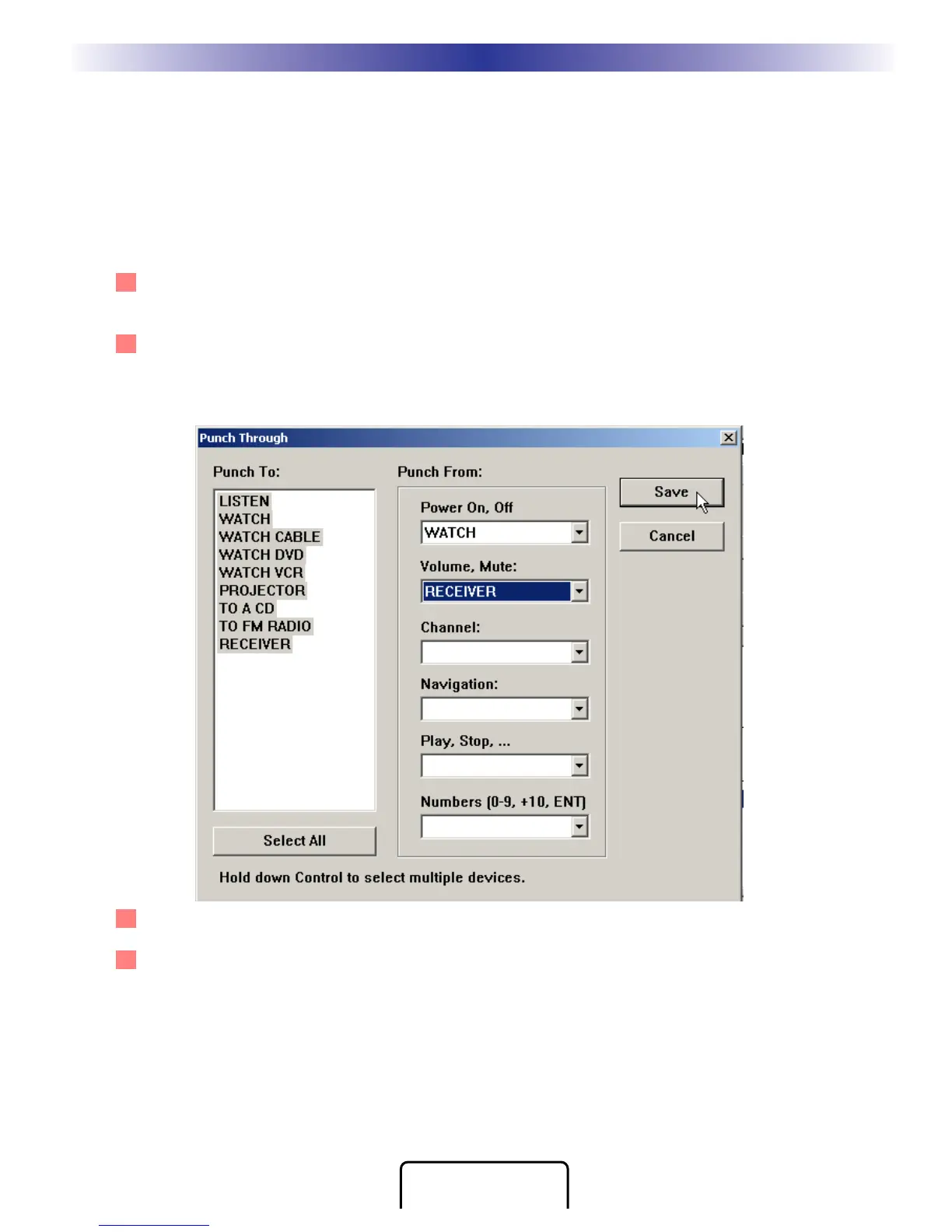 3 Select the device that has the codes you want used in the Punch From list.
