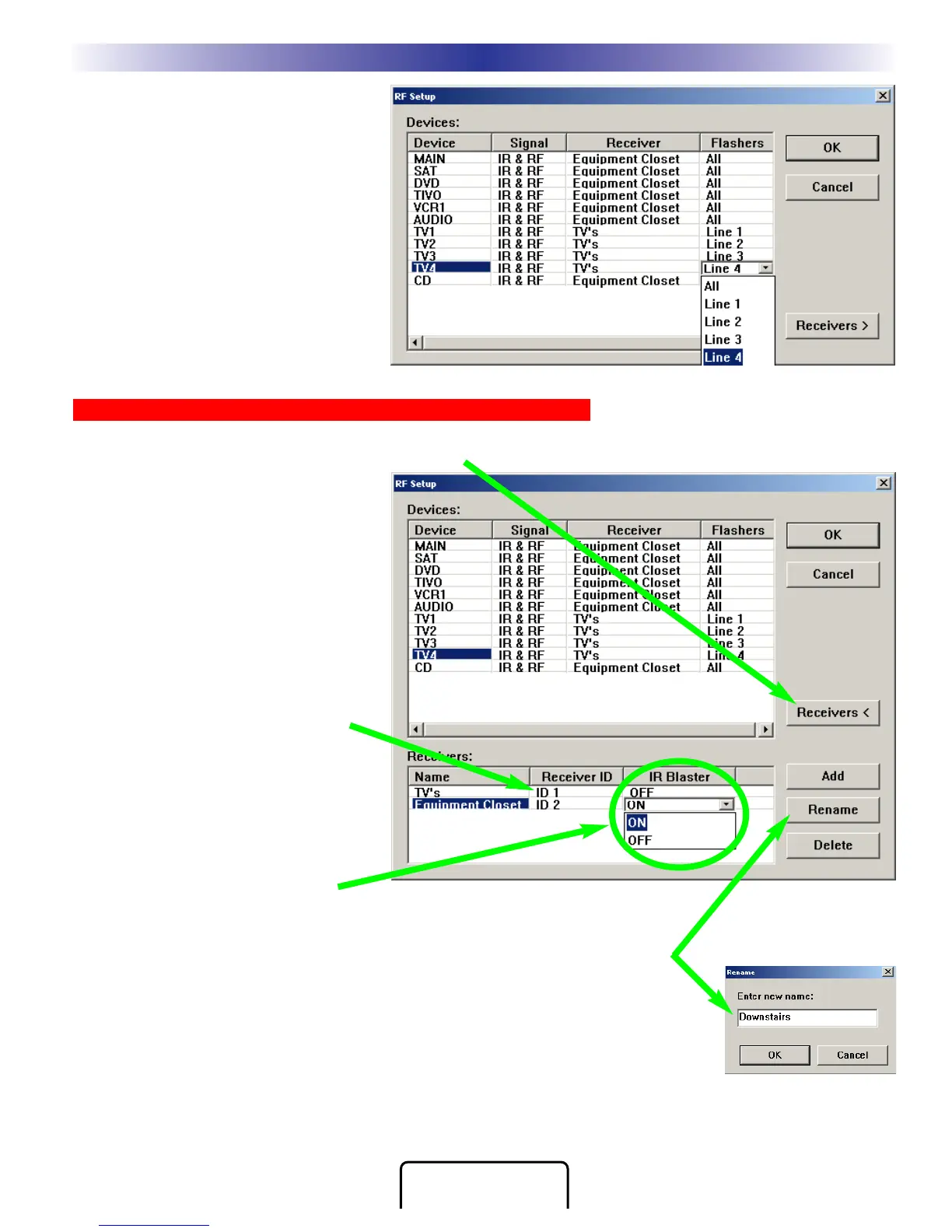 Blaster, click on the Receiver button of the RF