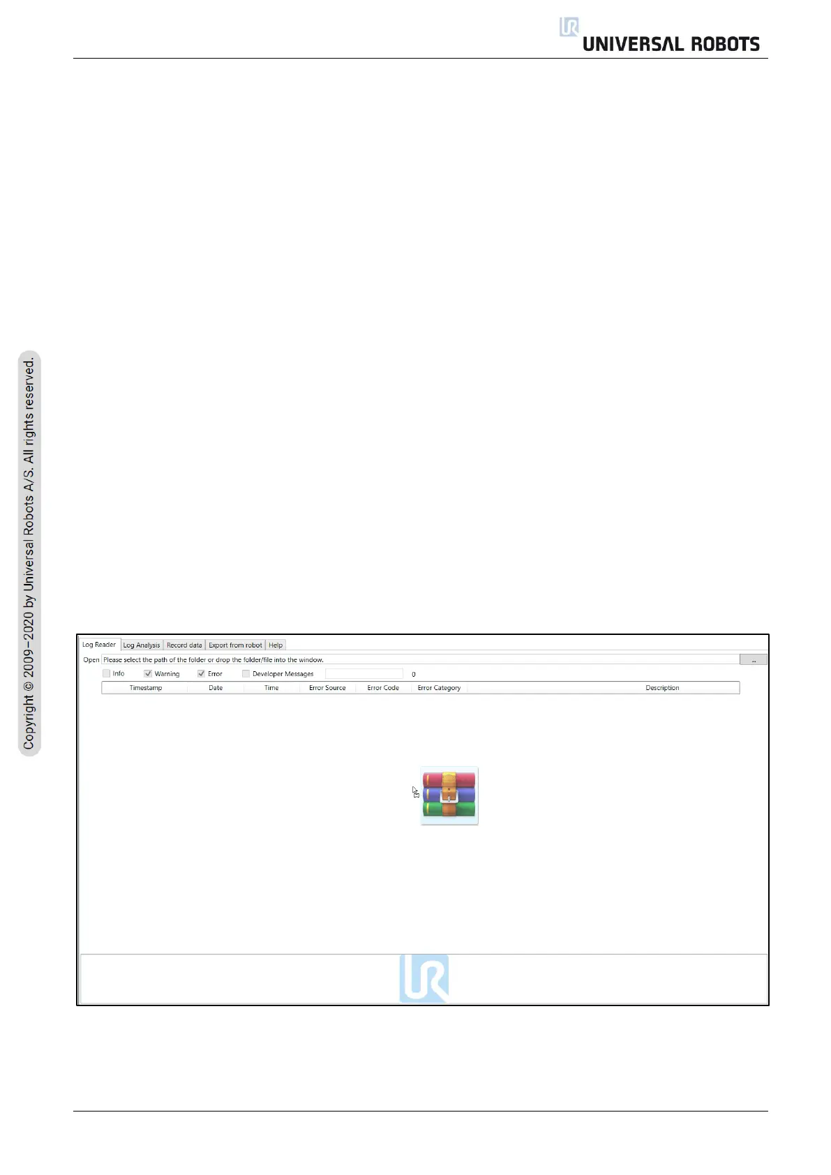 The purpose of the tool is to read, analyze and examine robot data from e-Series and CB3-Series robots.