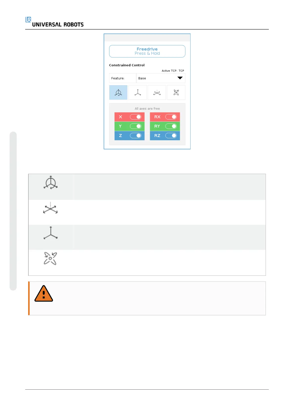 You can lock one or more of the axes allowing the TCP to move in a particular direction, as defined