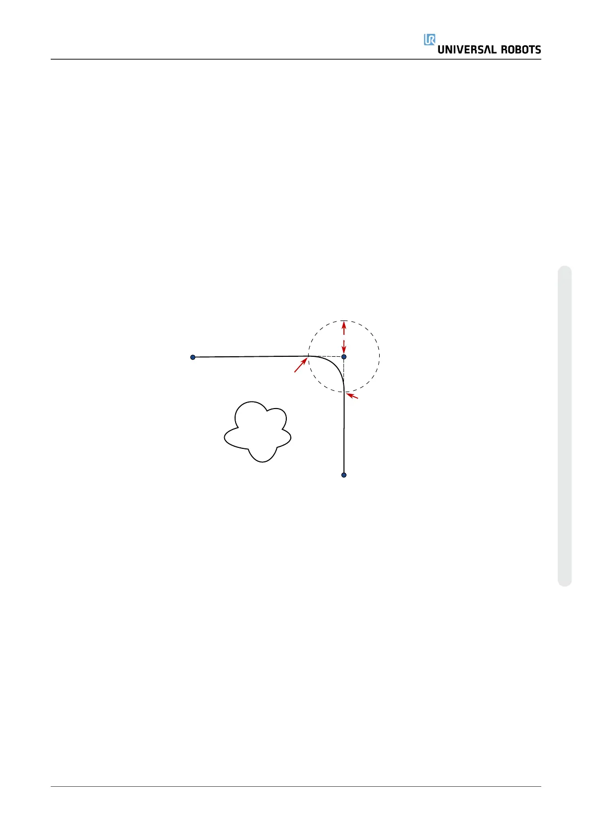 If a blend radius is set, the robot arm trajectory blends around the waypoint, allowing the robot arm