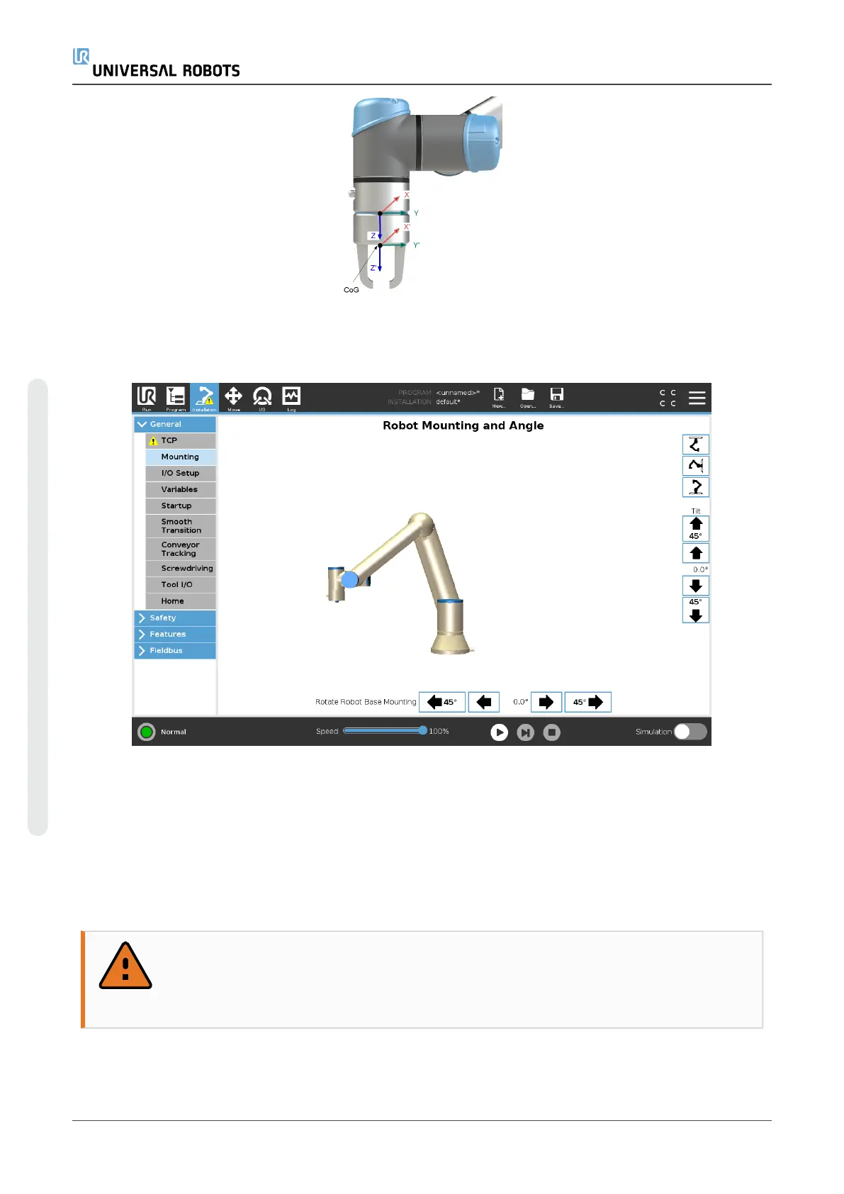 the Robot arm to hold itself in Freedrive Mode. For this reason, it is important to mount the Robot