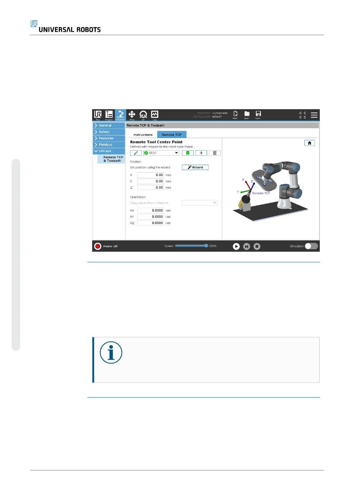 the Robot Arm moves relative to the Remote TCP. See .