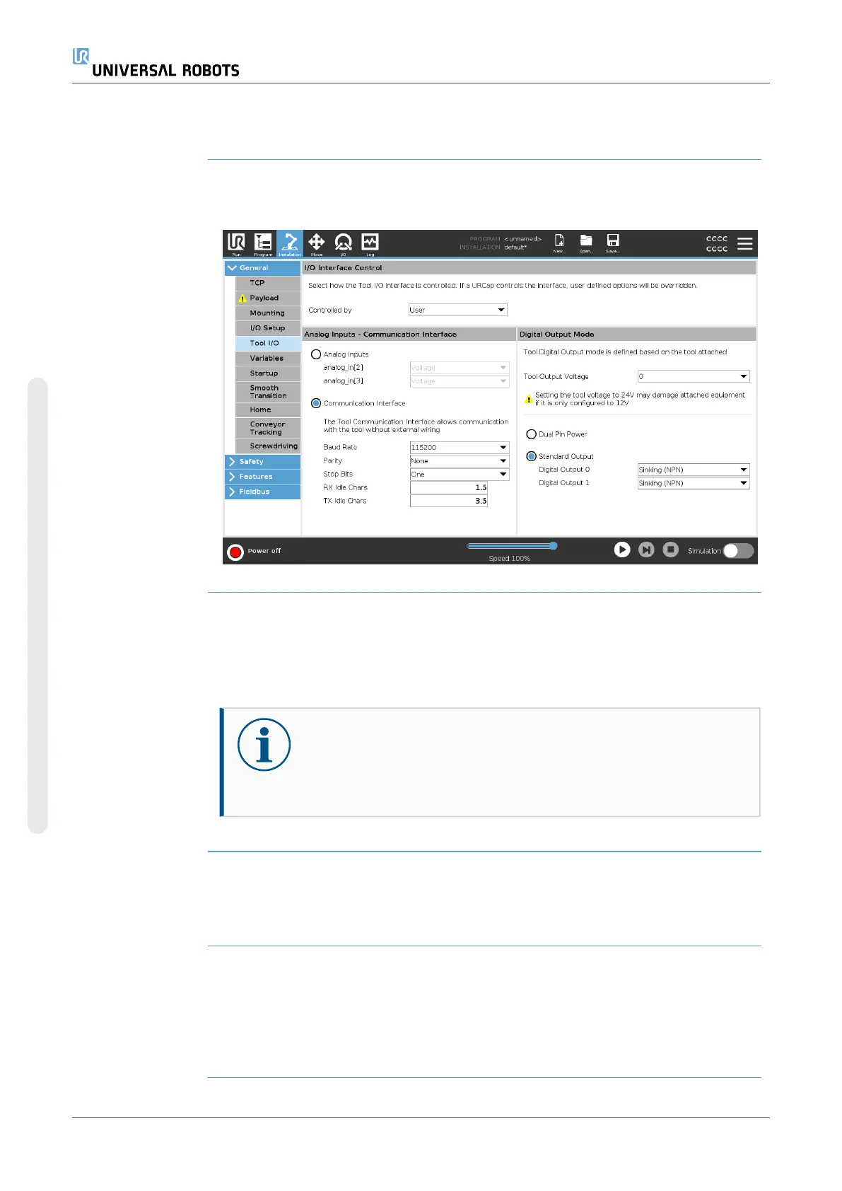 Description The I/O Interface Control allows you to switch between user control and URcap
