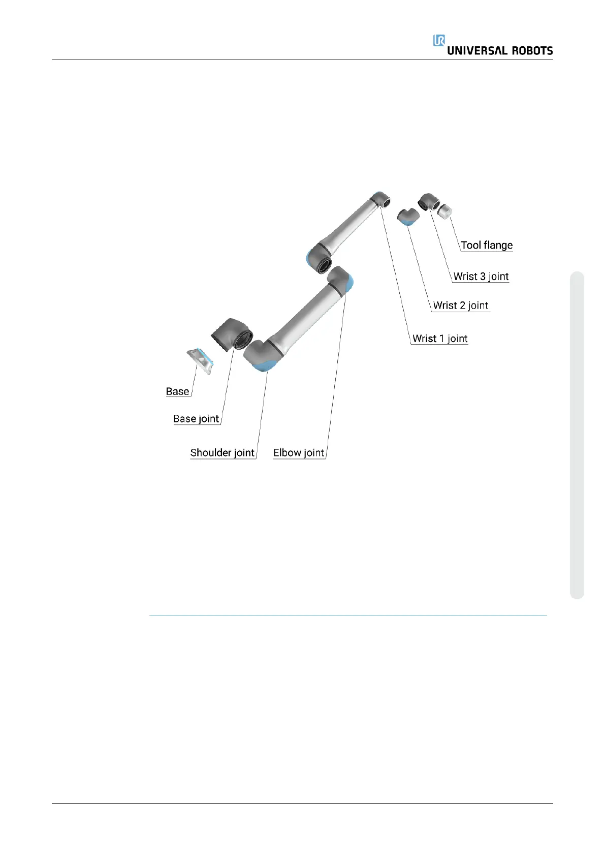 The Joints, Base and Tool Flange are the main components of the robot arm. The