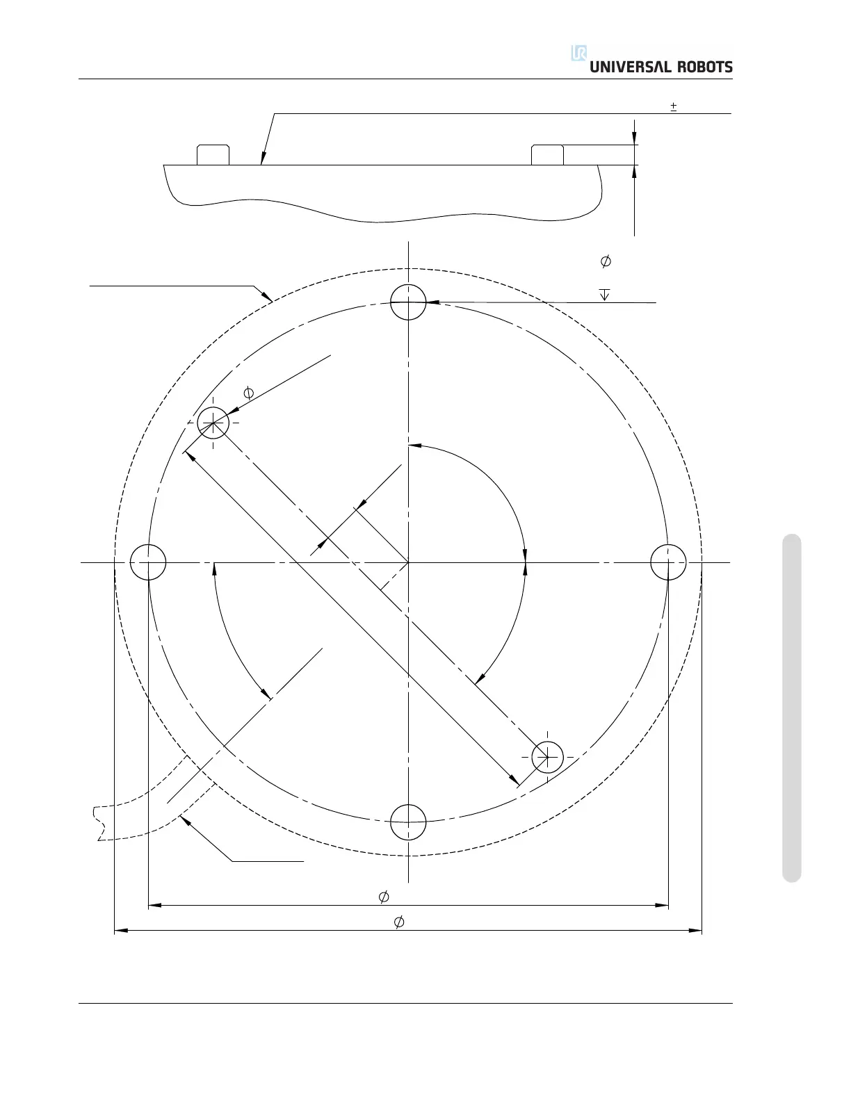 Figure 3.1: Holes for mounting the robot. Use four M8 bolts. All measurements are in mm.