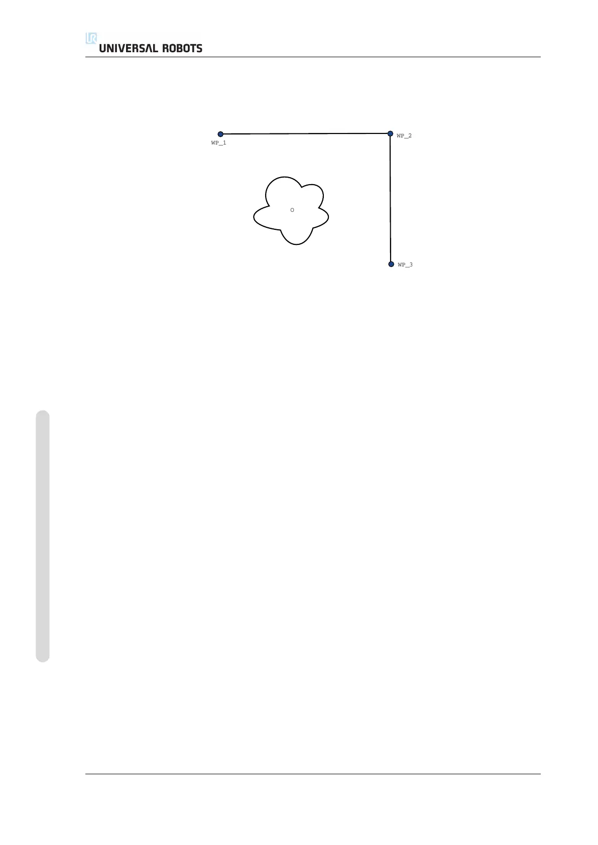 Figure 14.2: WP_1: initial position, WP_2: via point, WP_3: pick up position, O: obstacle.