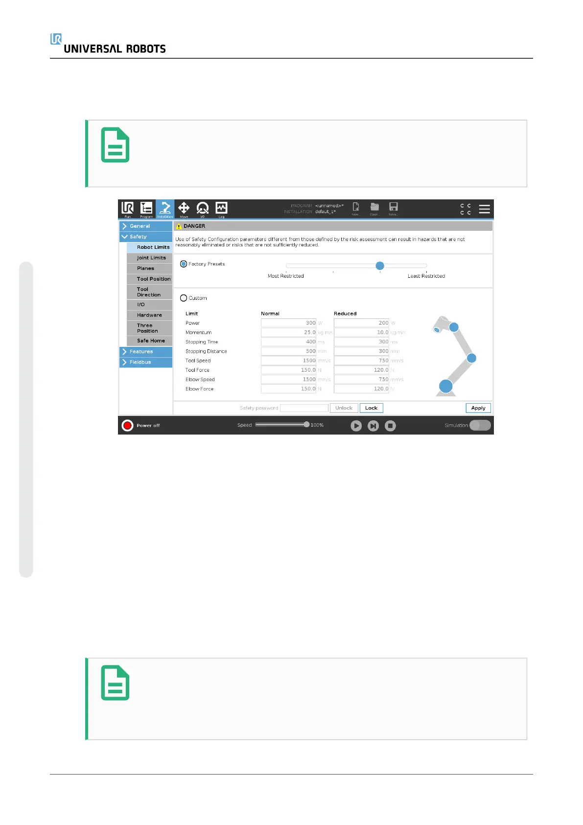 2. Custom is where you can set Limits on how the robot functions and monitor the associated
