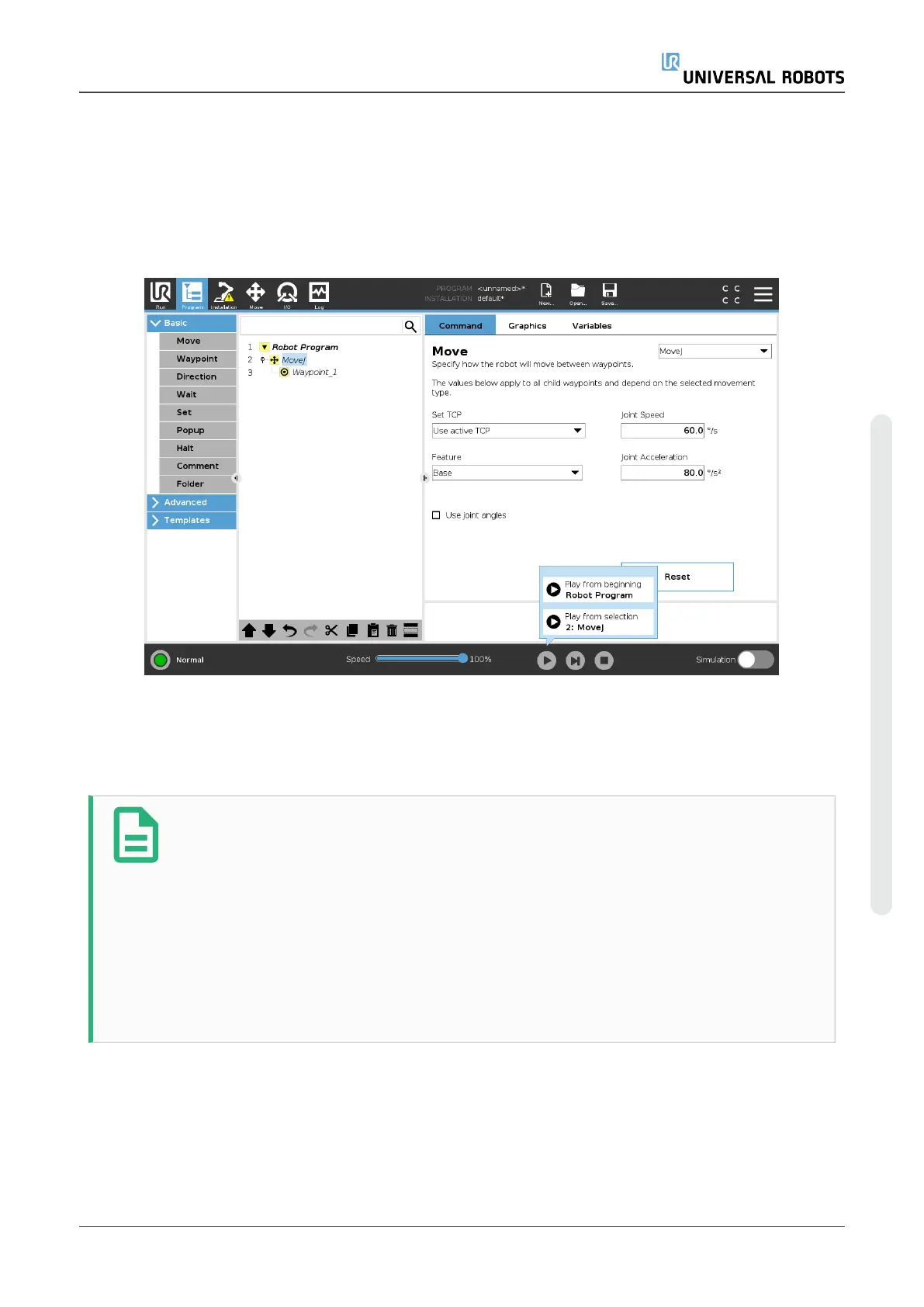 When the robot is in Manual Mode (see20.1. Operational Modeson page115), Play from Selection