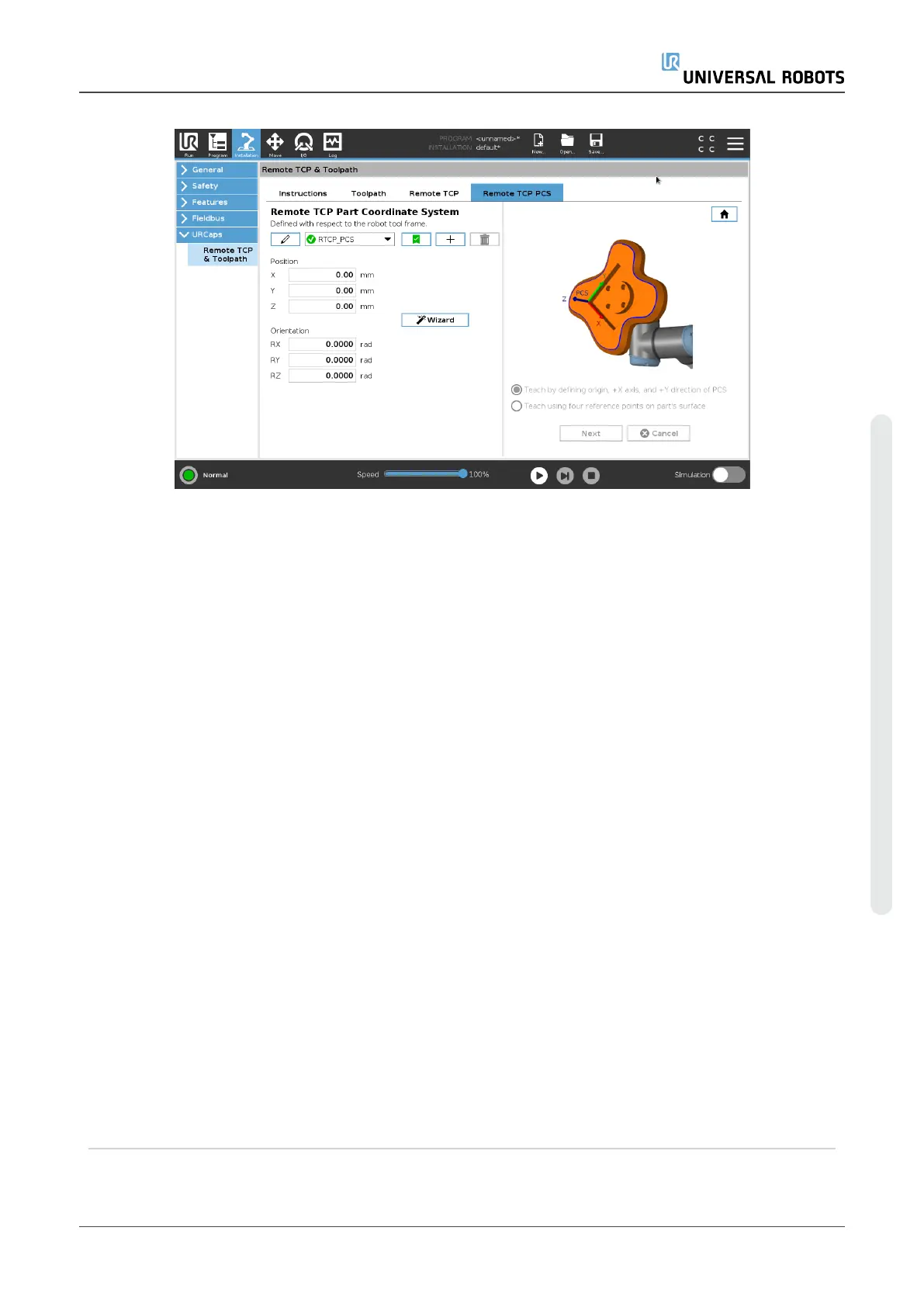 6. Jog the robot for the Remote TCP to touch the first reference point on the part.