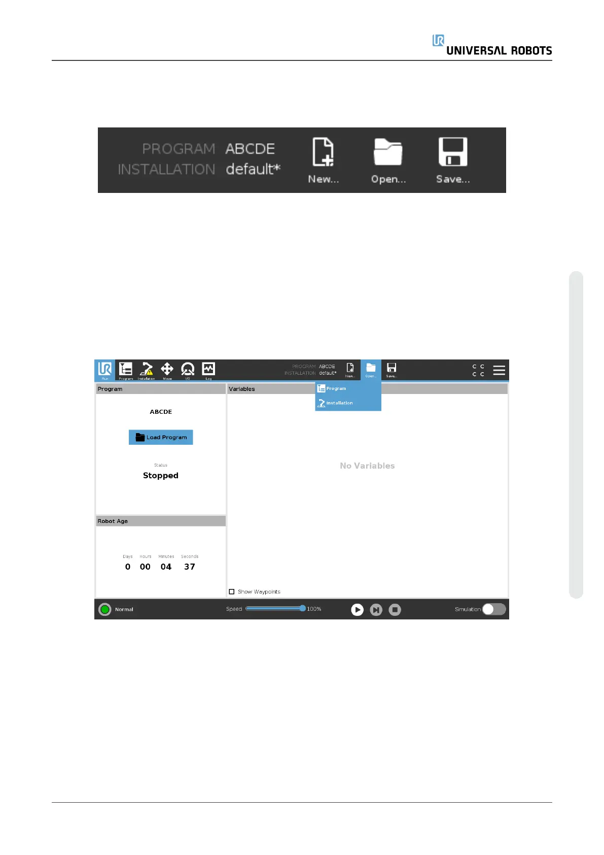 configure Programs and Installations: New..., Open... and Save.... The File Path displays your