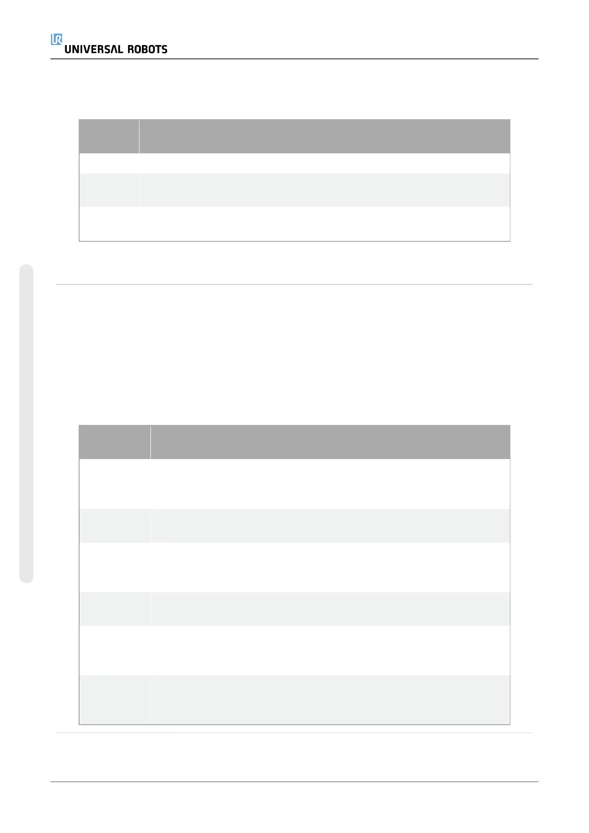 Universal Robots robot safety functions, as listed in the table below, are in the robot but