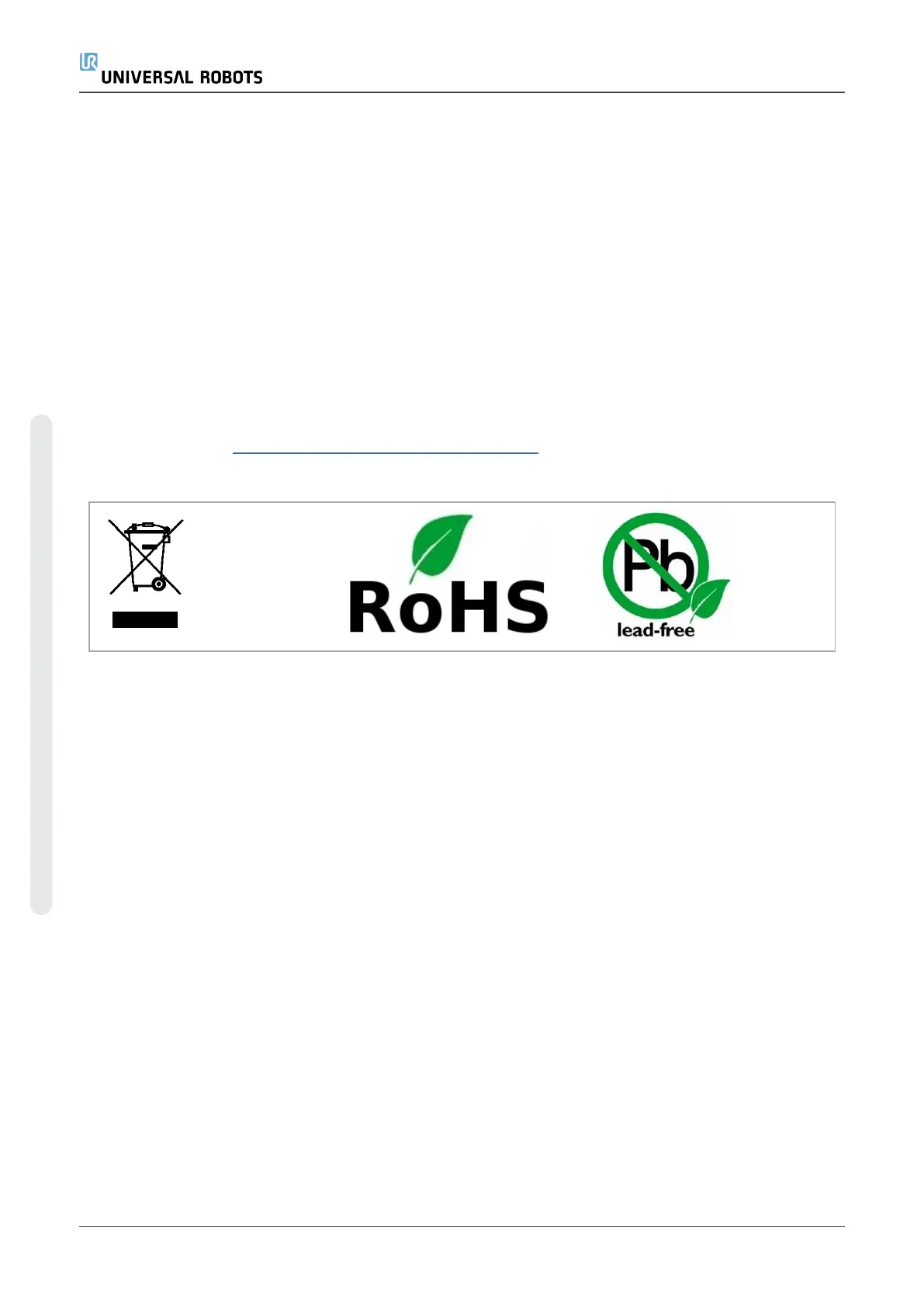Universal Robots e-Series robots are produced with restricted use of hazardous substances to