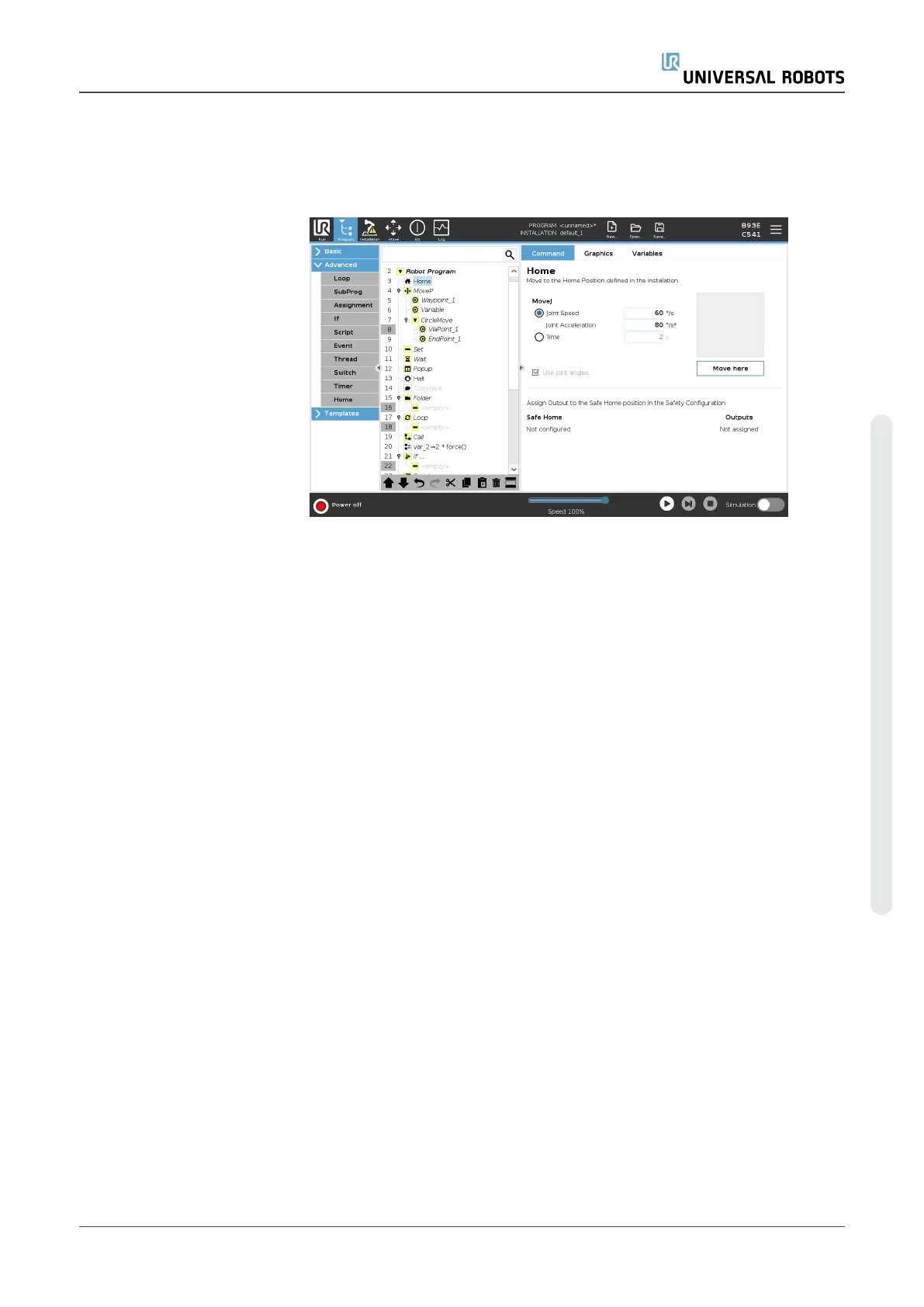 Description The Home node uses joint angles to move the robot to a predefined Home