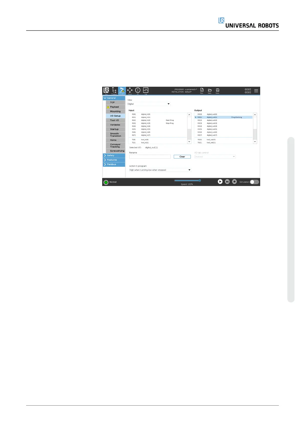Description Use the I/O Setup screen to define I/O signals and configure actions with