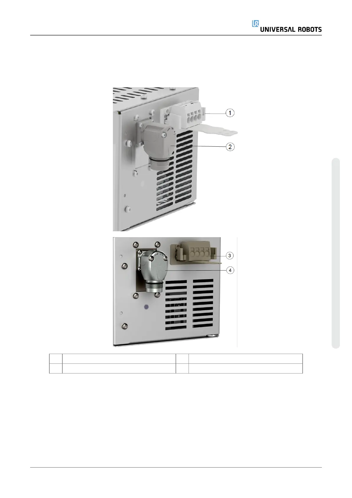 3 Robot arm connector (e-Series) 4 OEMCBconnector (e-Series)