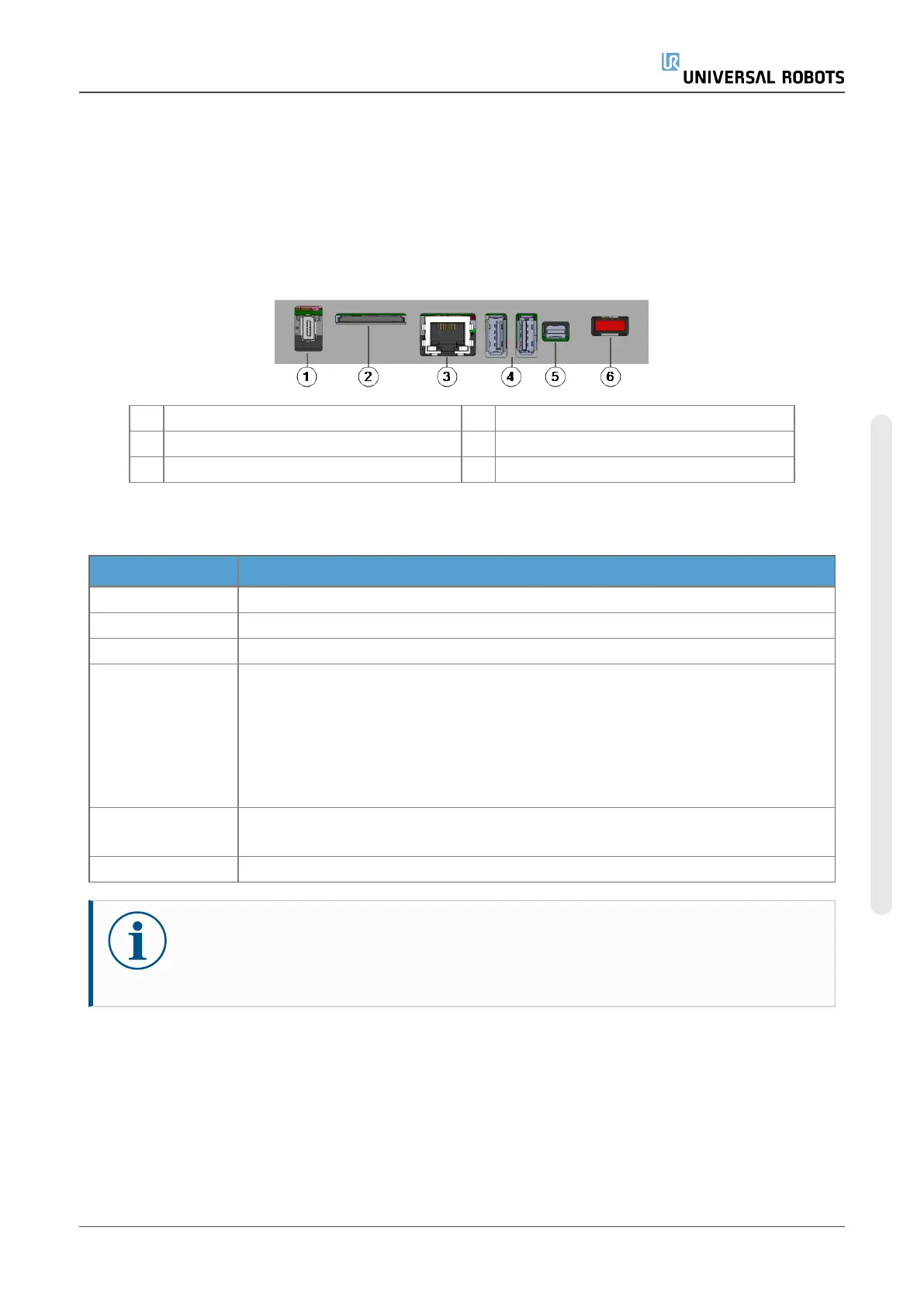 1 Teach Pendant port 2 SD card slot