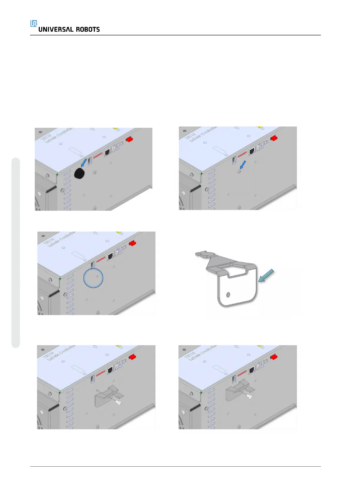 The bracket provides cable strain relief when the Teach Pendant is in use, under normal operation.