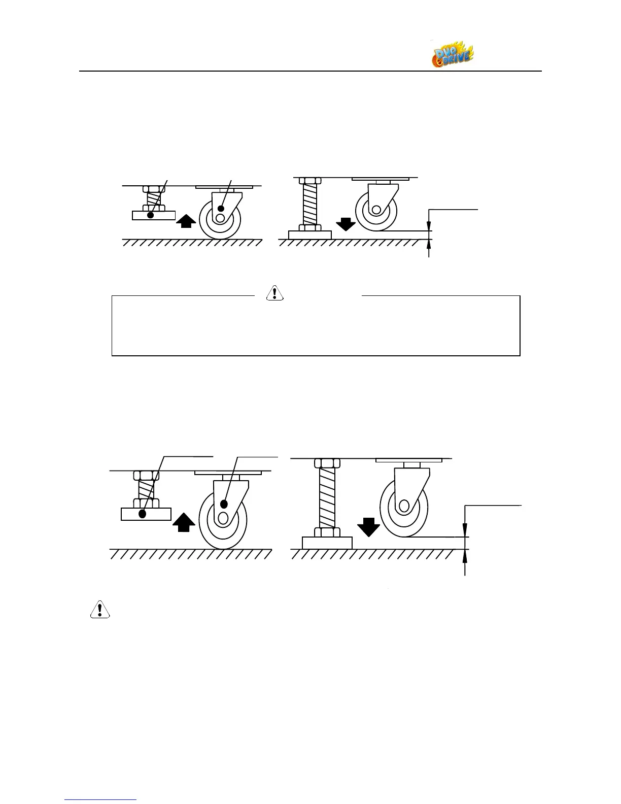 To secure the game, adjust the Leveler down until it touches the floor, lifting the casters off