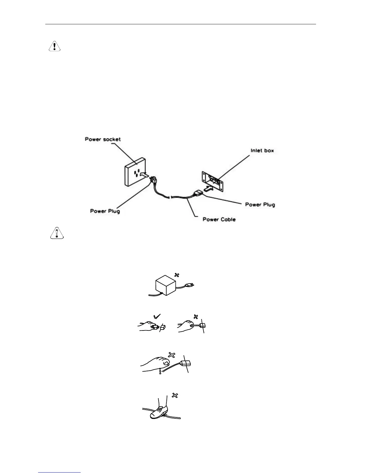 Do not plug the equipment power cables into an electrical outlet if the power cable is