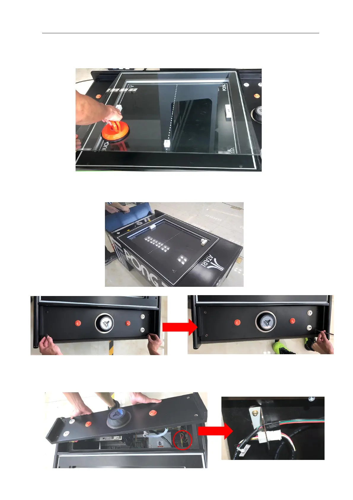 Step 2 Open end panel of player position shown in the pictures. Remove the screw covers