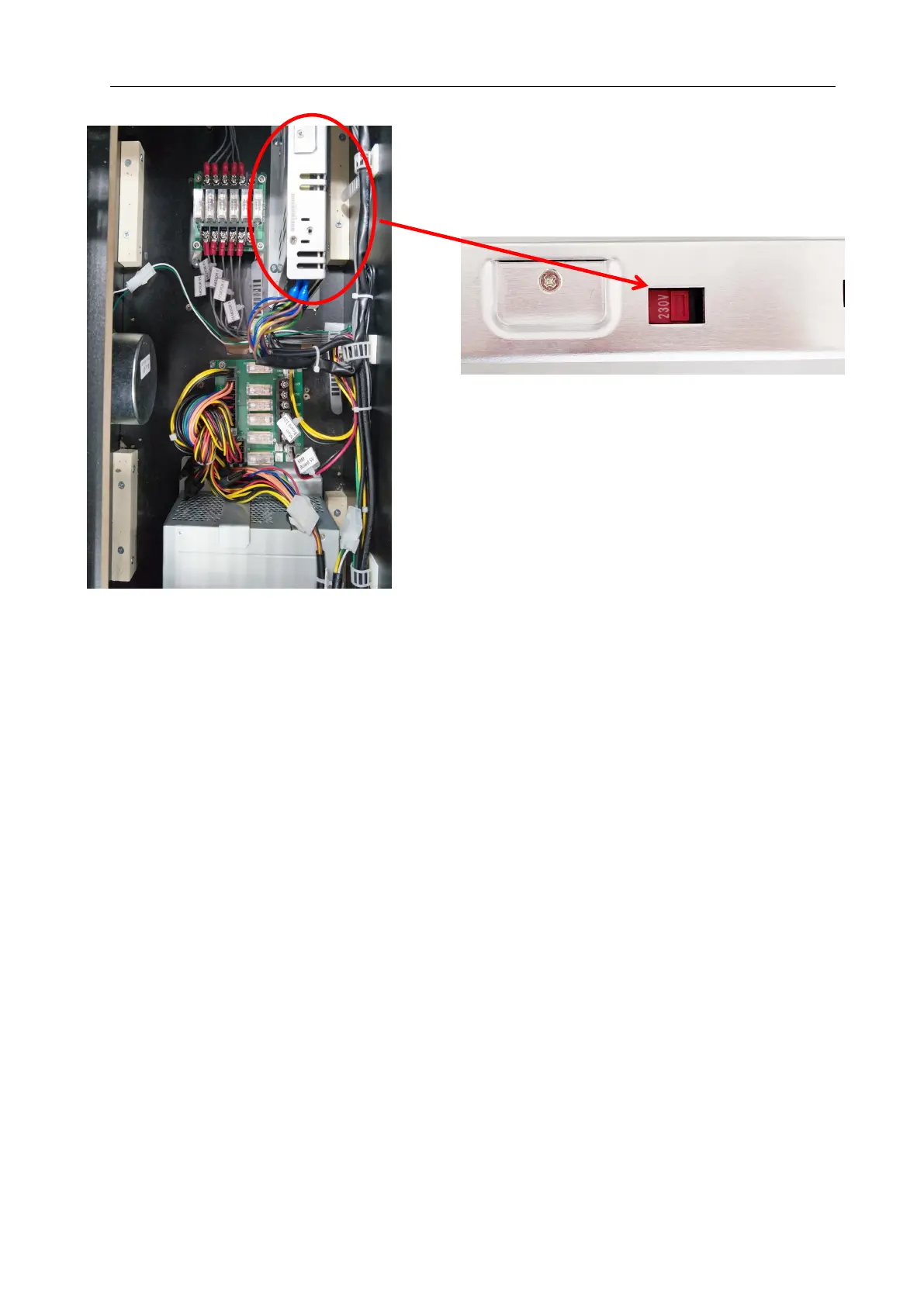 Step 4 Locate the Power supply. Toggle the switches to 230V.