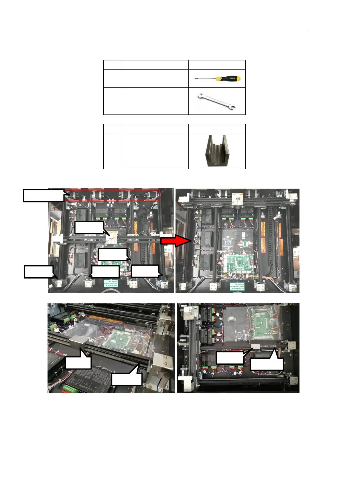Step 1 Follow the 8.6 steps to remove the playfield. Move Y axle to motor side.