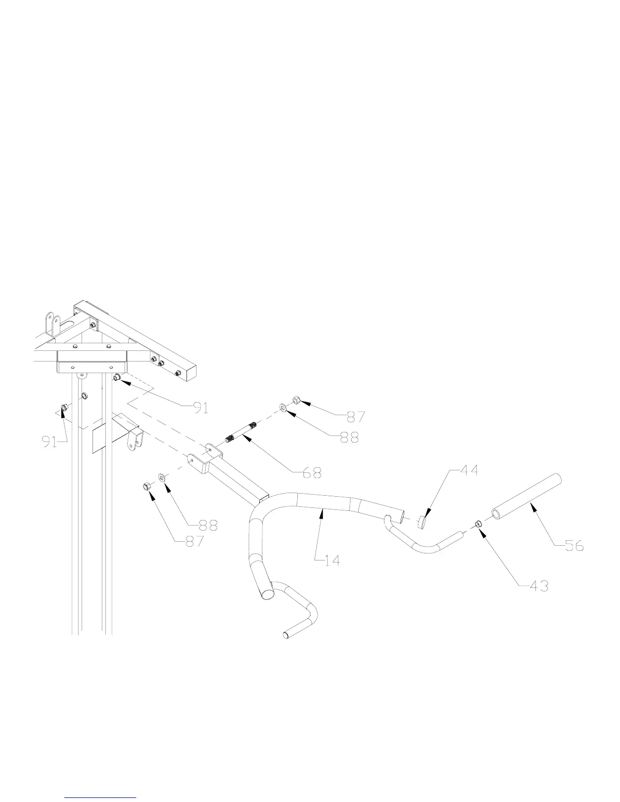 Place PRESS BAR (14) behind LEFT VERTICAL FRAME (7), not shown in this figure, and attach to CENTER VERTI-