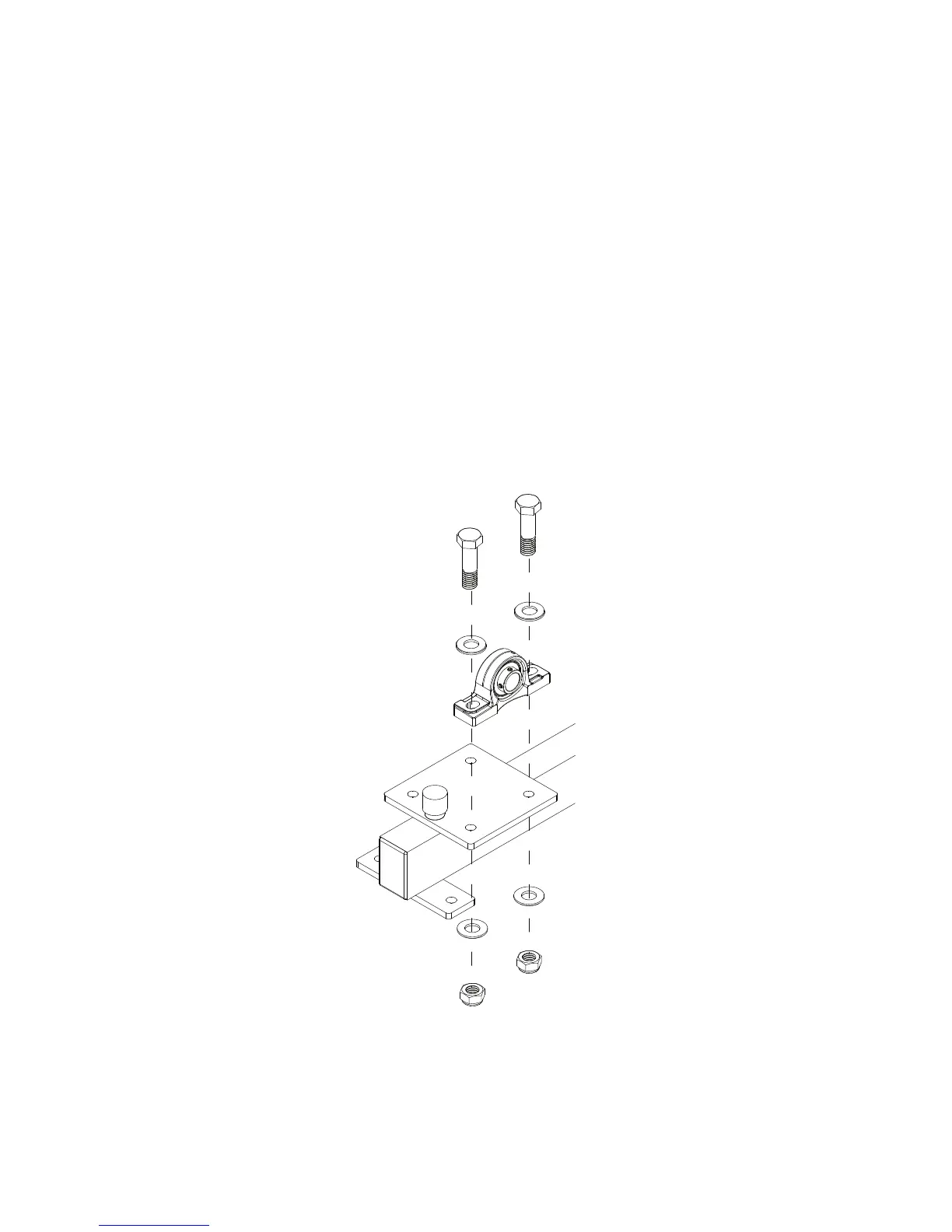 Attach one BEARING HOUSING (11) to BASE FRAME (2) with 1/2” x 1-3/4” HEX HEAD BOLTS (38), 1/2” WASH-