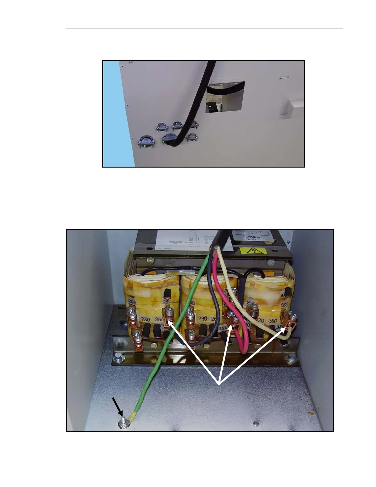 14. Connect red, white and black wires (1,2 & 3 in Fig. 8) to 280 VAC Burndies on