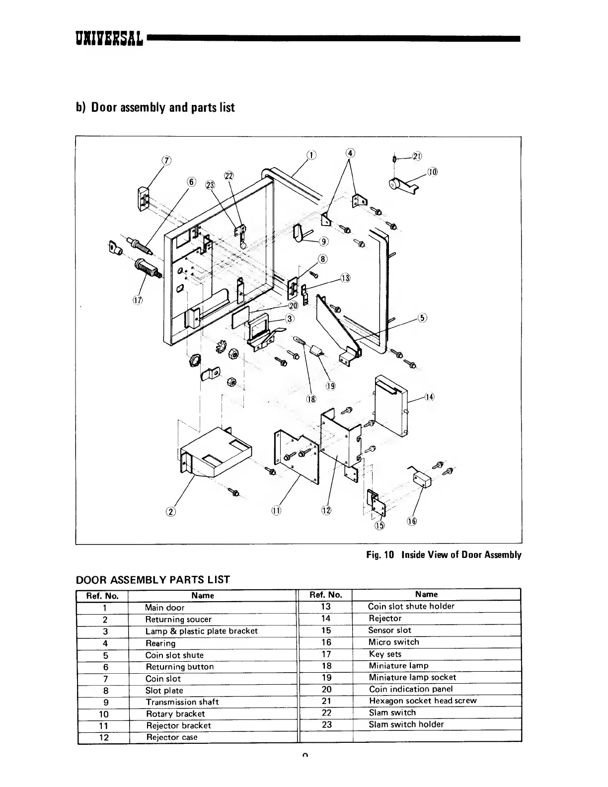 Universal COSMIC SERIES - E. DOOR ASSEMBLY AND PARTS LIST (INSIDE CABINET)