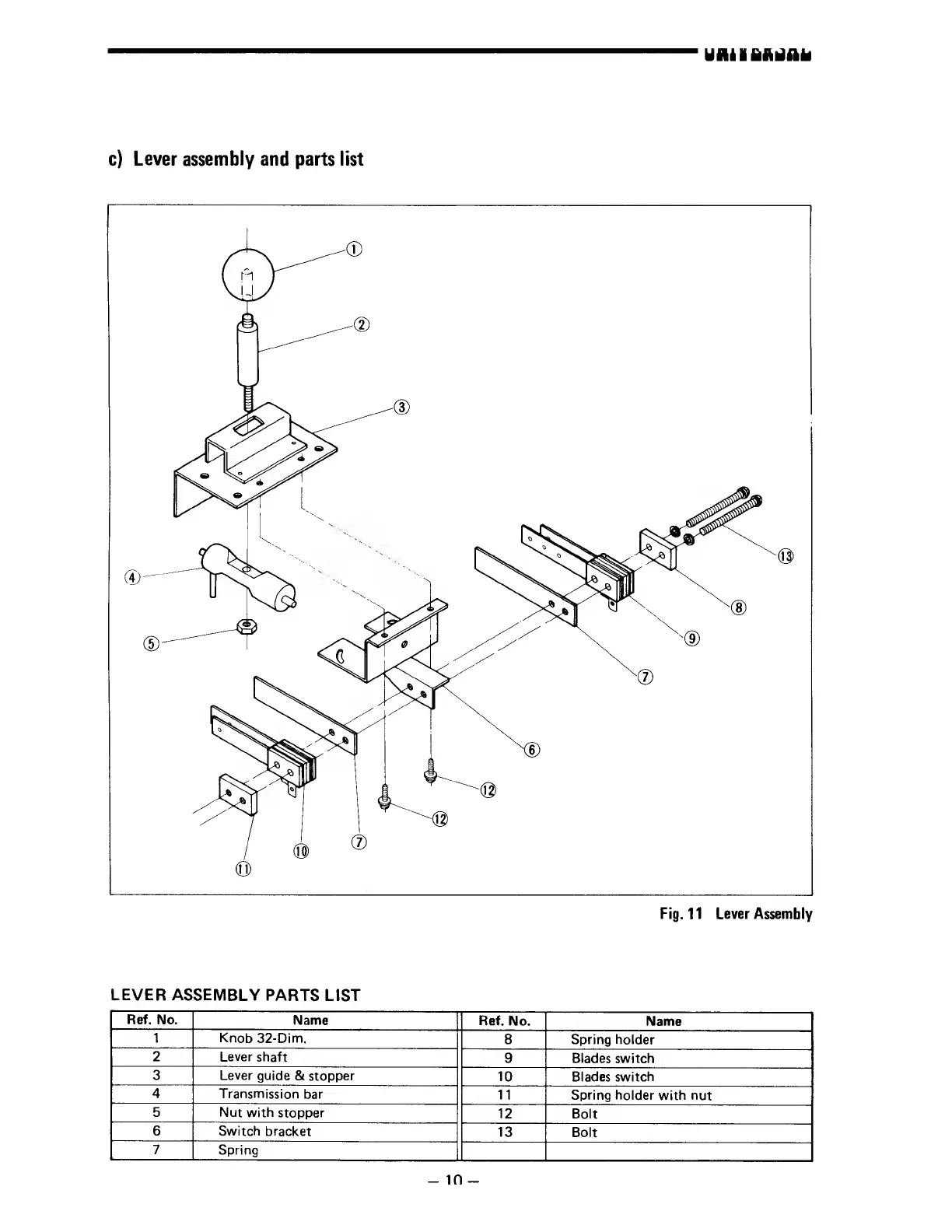 Universal COSMIC SERIES - F. LEVER ASSEMBLY AND PARTS LIST (INSIDE CABINET)