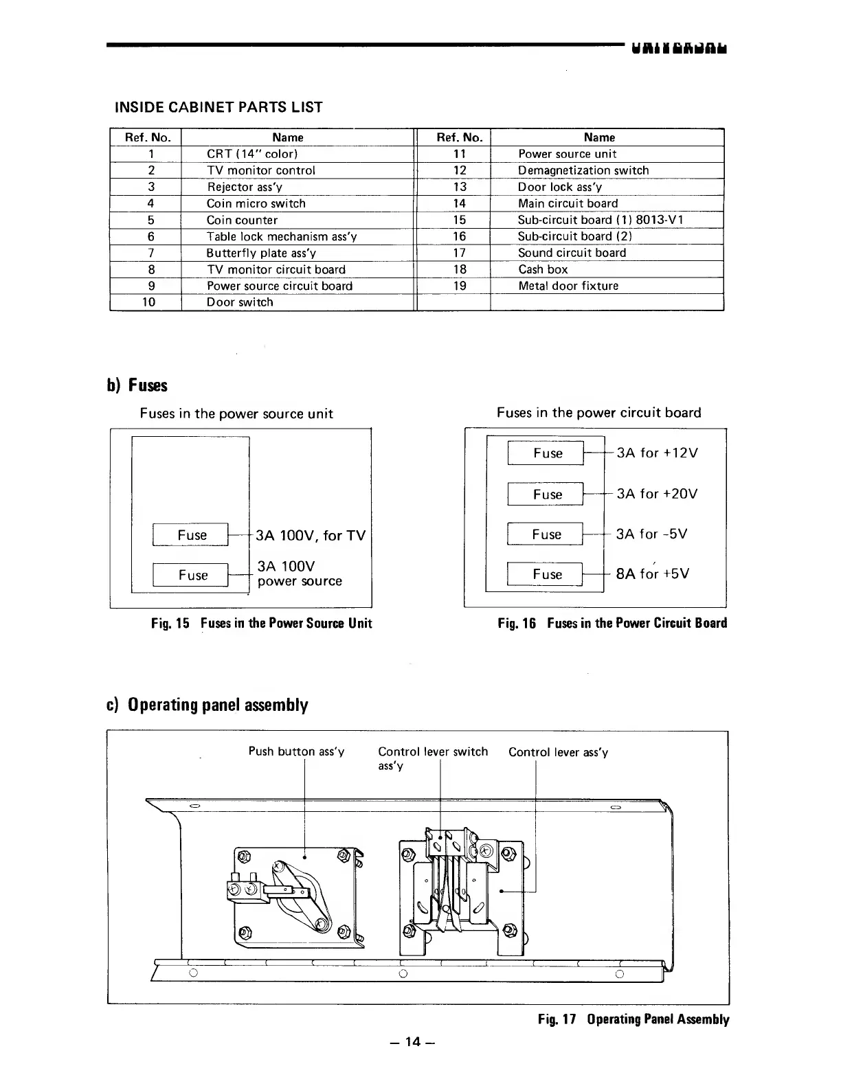 Universal COSMIC SERIES - C. FUSES (INSIDE CABINET); D. OPERATING PANEL ASSEMBLY (INSIDE CABINET)