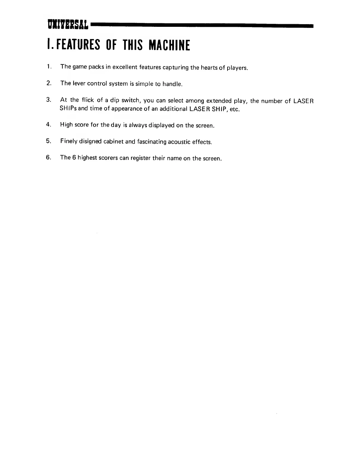 Universal COSMIC SERIES - I. FEATURES OF THIS MACHINE