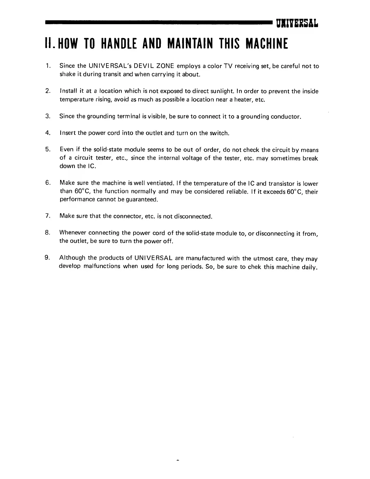 Universal COSMIC SERIES - II. HOW TO HANDLE AND MAINTAIN THIS MACHINE