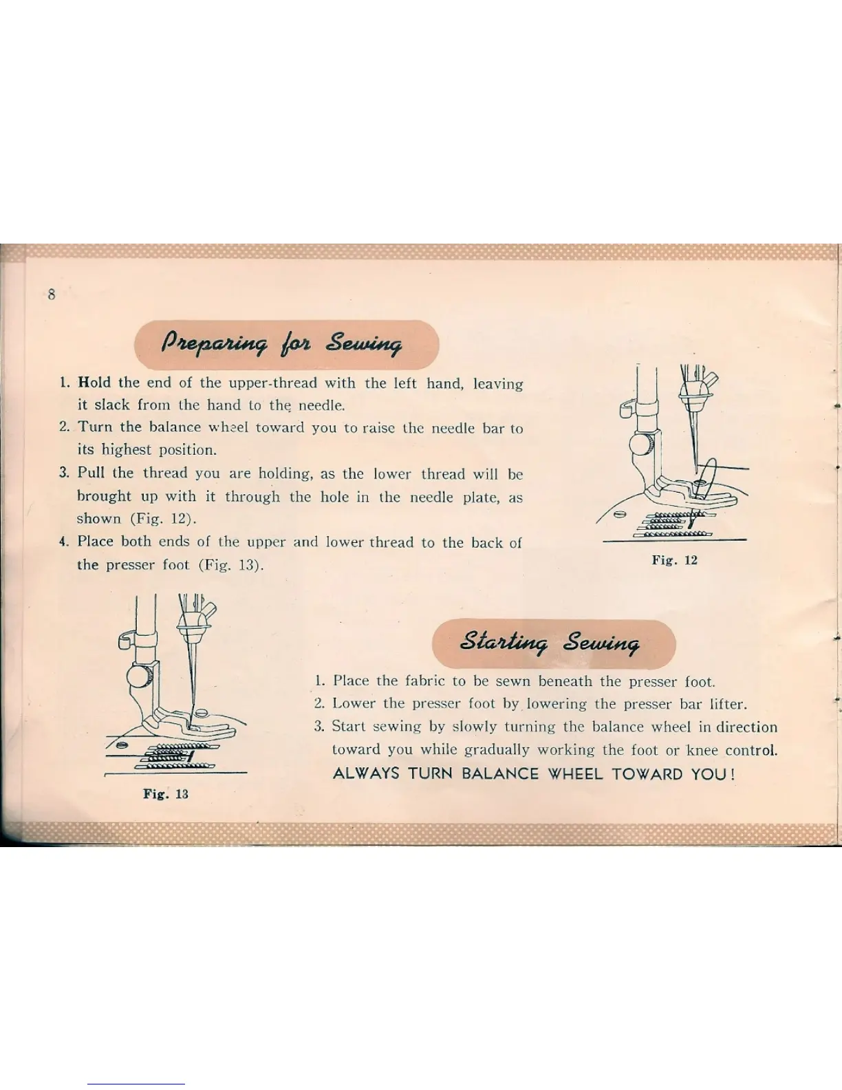 Universal De Luxe Zig Zag - Preparing for Sewing; Starting Sewing