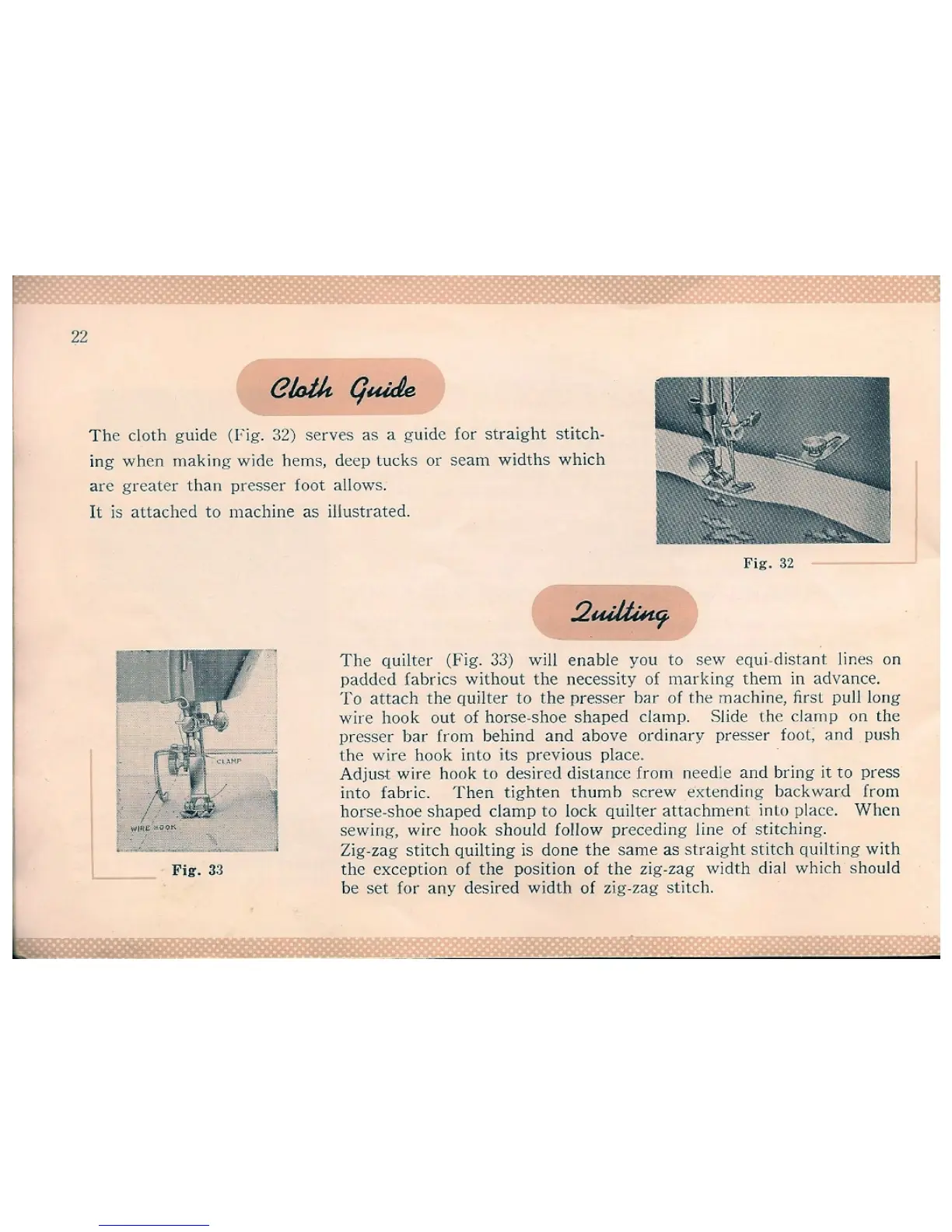 Universal De Luxe Zig Zag - Using the Cloth Guide; Quilting Methods