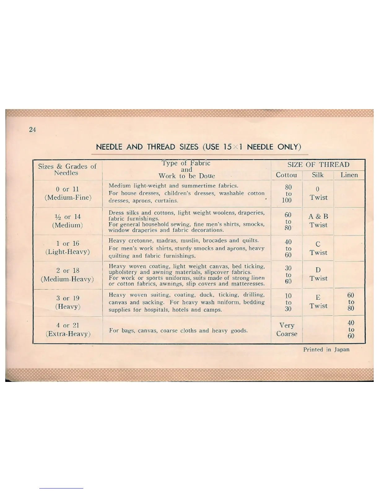 Universal De Luxe Zig Zag - Needle and Thread Size Guide